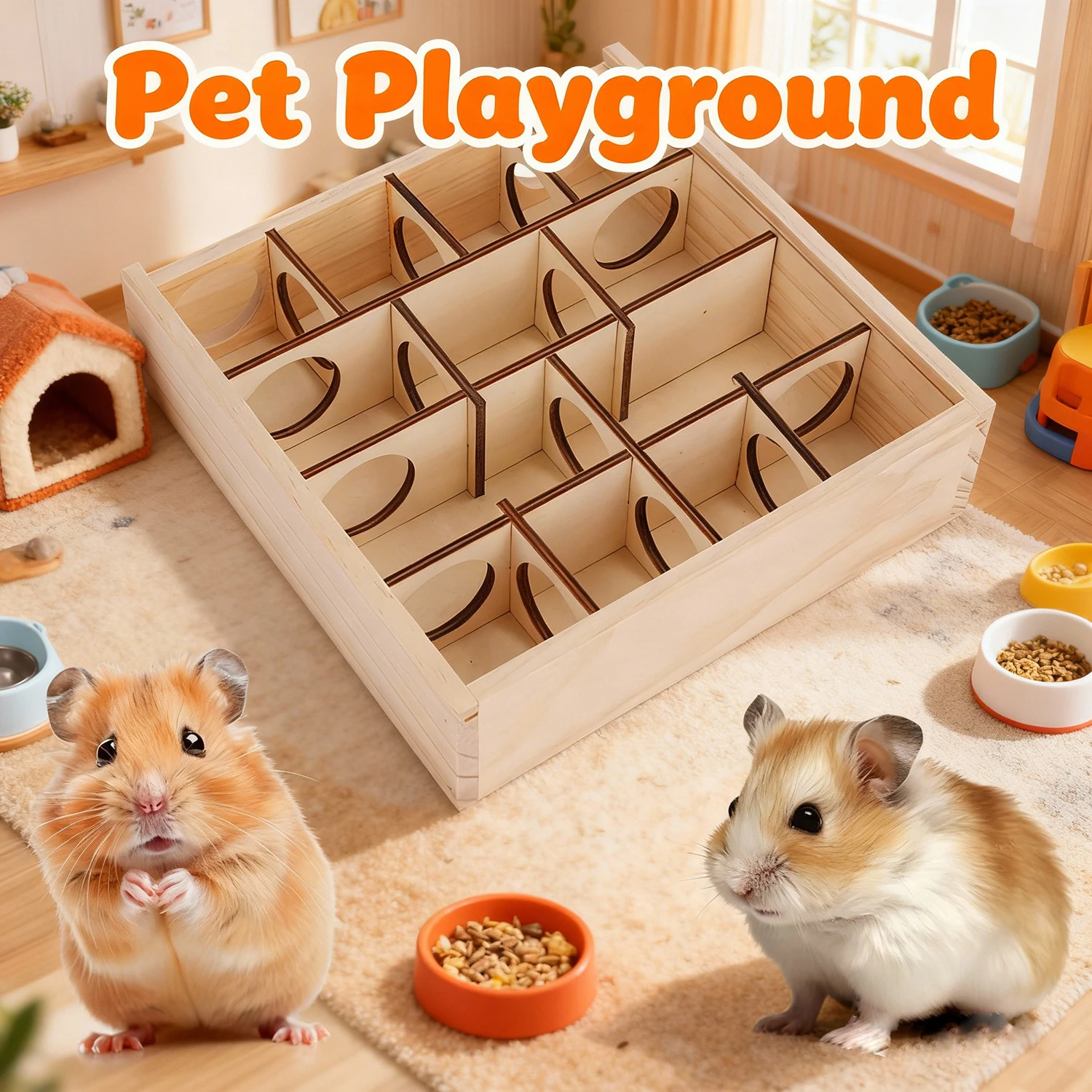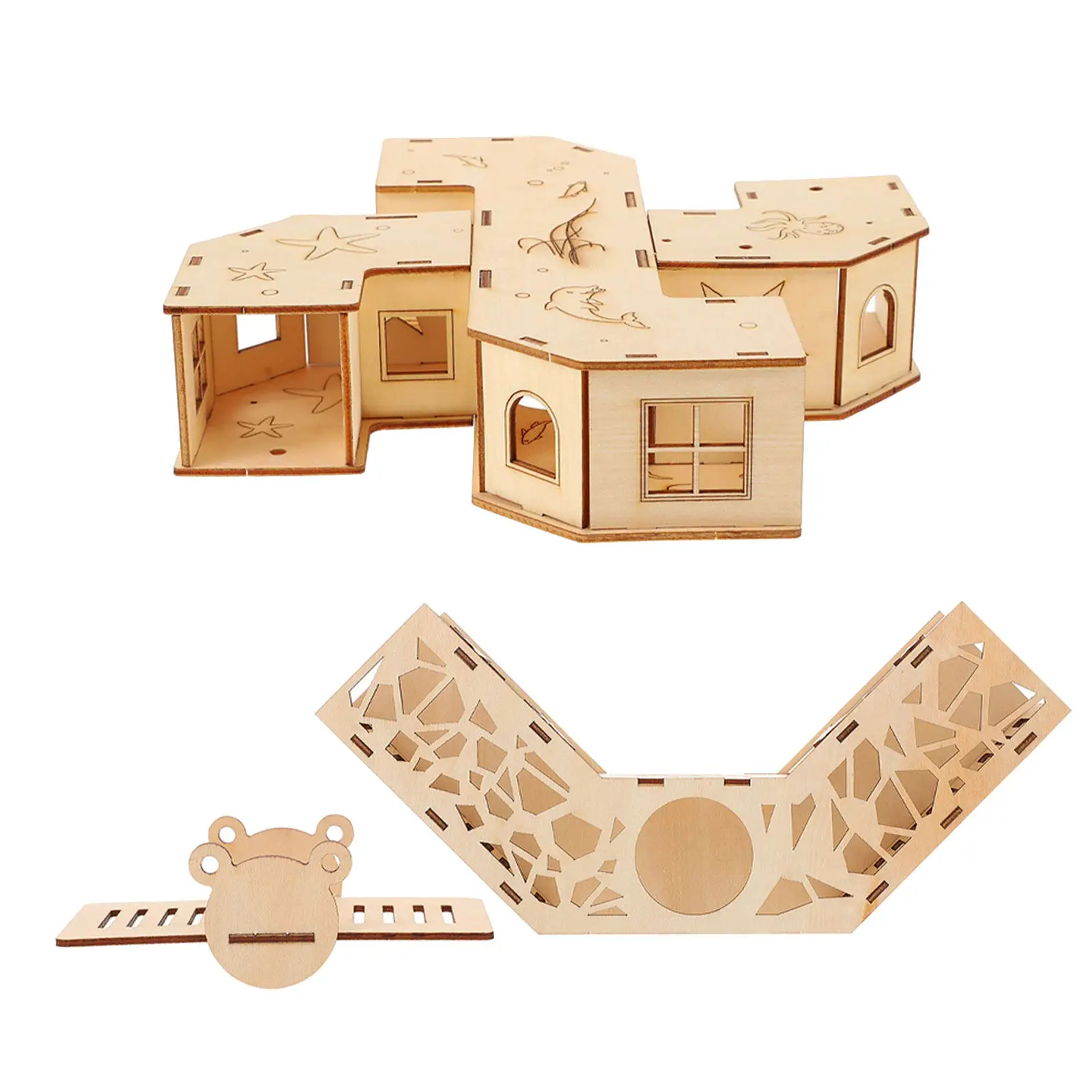 Labirinto per criceti in legno, casetta da gioco multicamera per criceti/Gerbils, incrichimento di gabbie in legno naturale con tunnel per esercizi