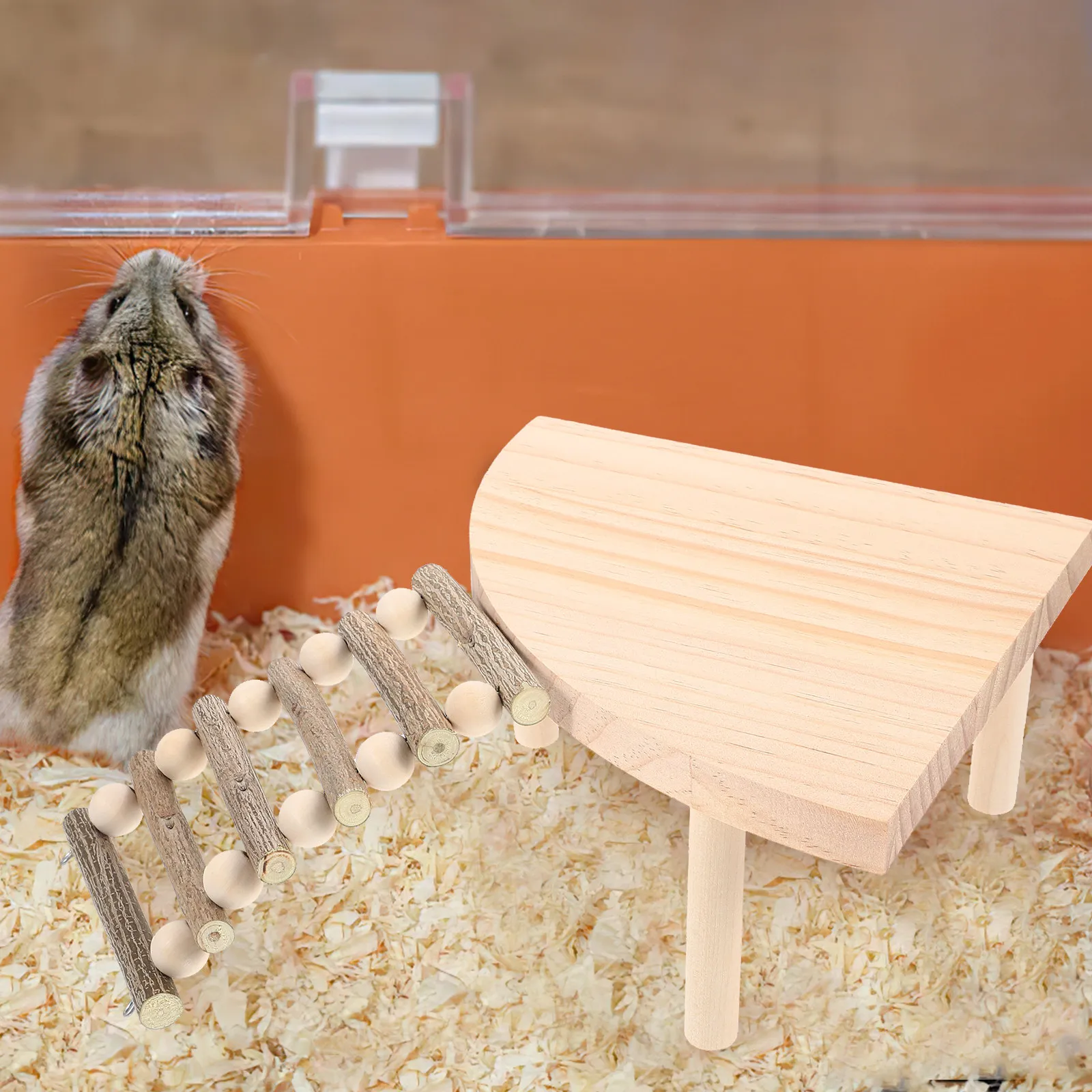 Piattaforma di Arrampicata in Legno per Criceti con Gambe da 8 Cm per Piccoli Animali Domestici, Design a Scala in Ramo Naturale, Decorazione Multifunzionale per Gabbie