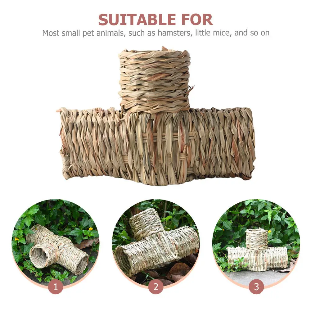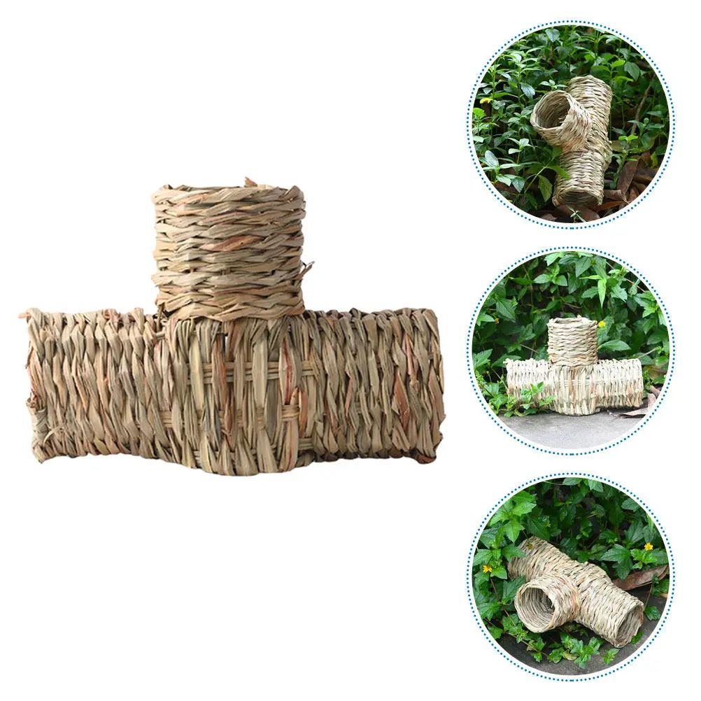 Tunnel per Criceti in Erba Naturale Intrecciata a Mano, Design Connettibile a Tre Vie, per Piccoli Animali Domestici, Alloggio per il Riposo e l'Esercizio Fisico, Riduce lo Stress