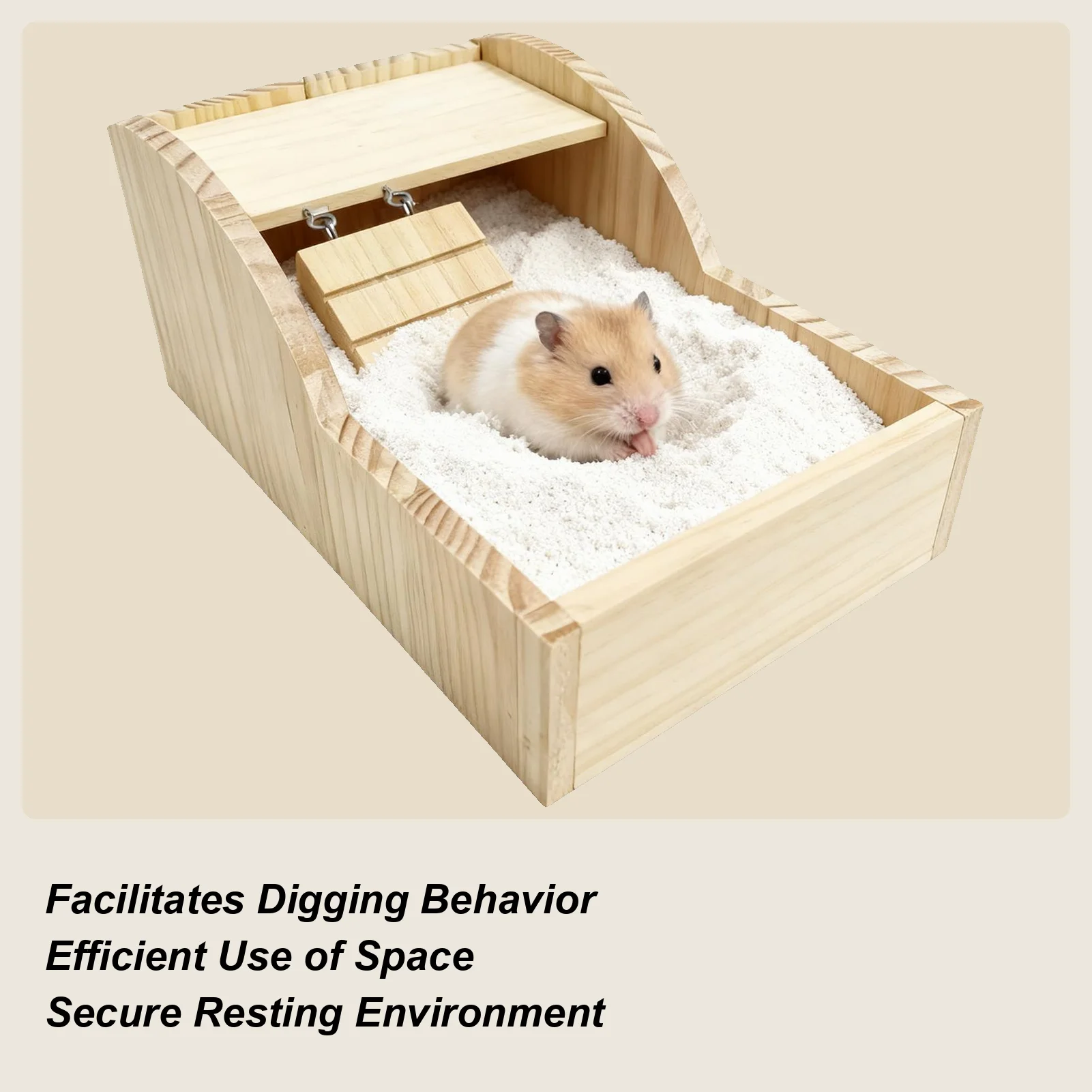 Vasca da bagno per criceti in legno con contenitore a scala Scatola per vasca da bagno per criceti per arricchimento Cura degli animali Comfort Gabbia per la casa Stile di vita Beneficio
