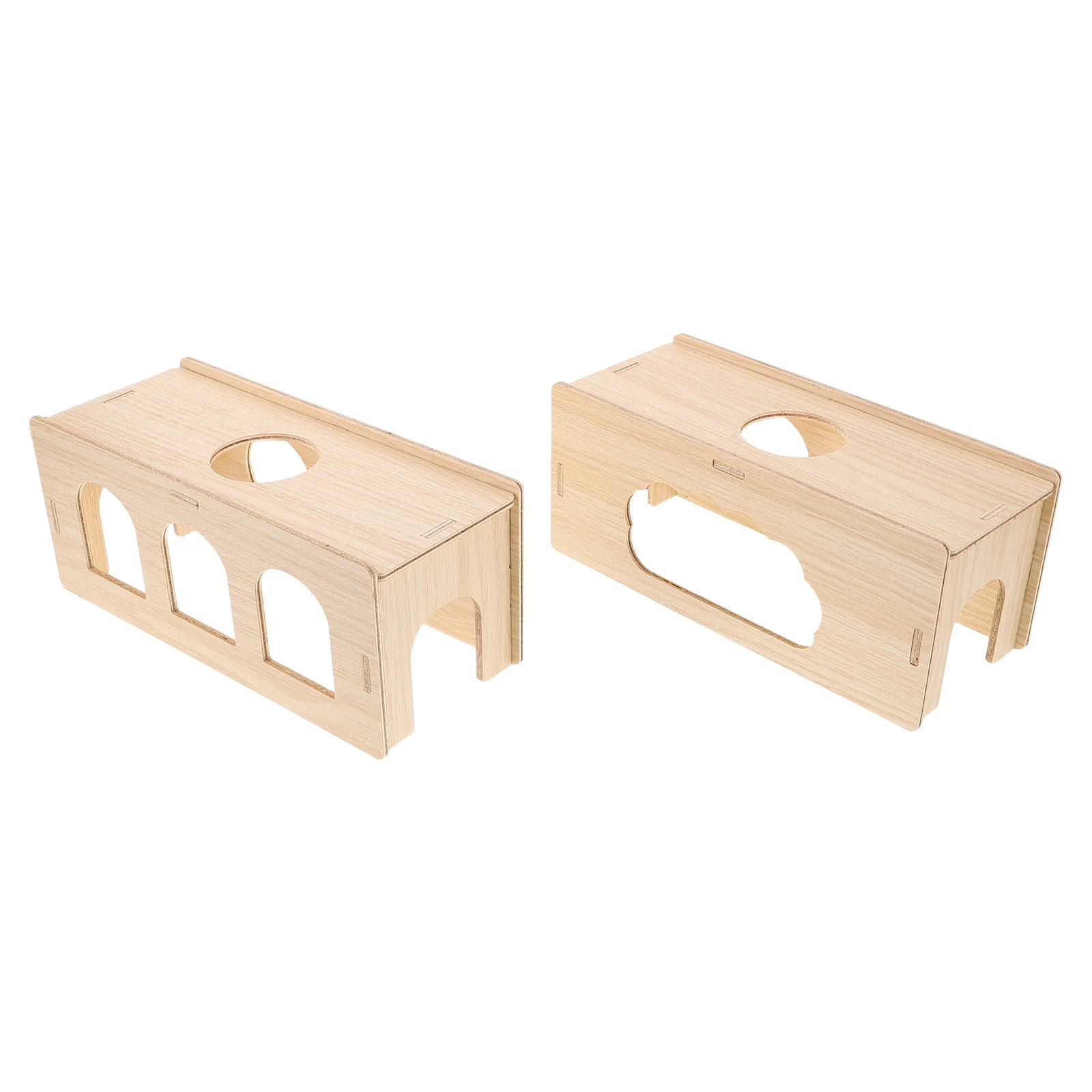 Piattaforma di gioco multilivello per tunnel per criceti in legno da 2 pezzi per piccoli animali Accessori per gabbie per camera nascondiglio Casa per animali domestici