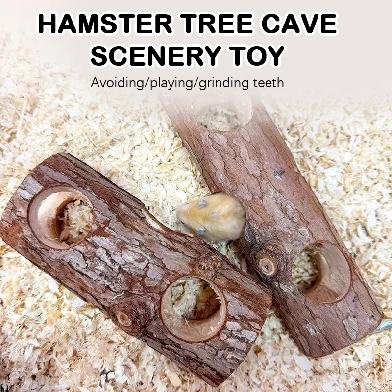 Tunnel giocattolo per piccoli animali, nascondiglio in legno naturale masticabile, tronco di albero cavo della foresta di criceti