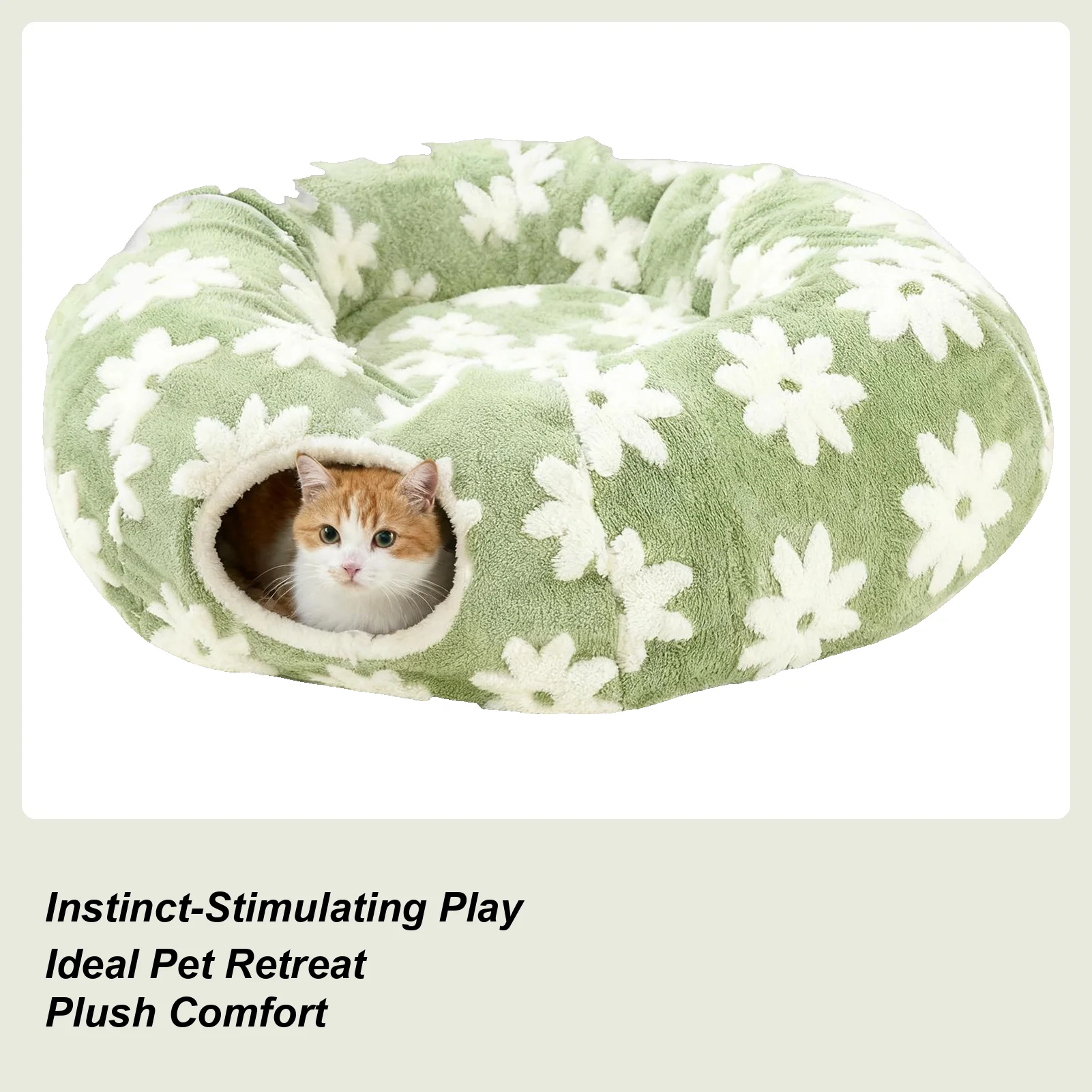 Tunnel per gatti Letto in peluche lavabile con design a sfera e fiore Tunnel interattivo per ciambelle per gatti per gattini che strisciano e graffi