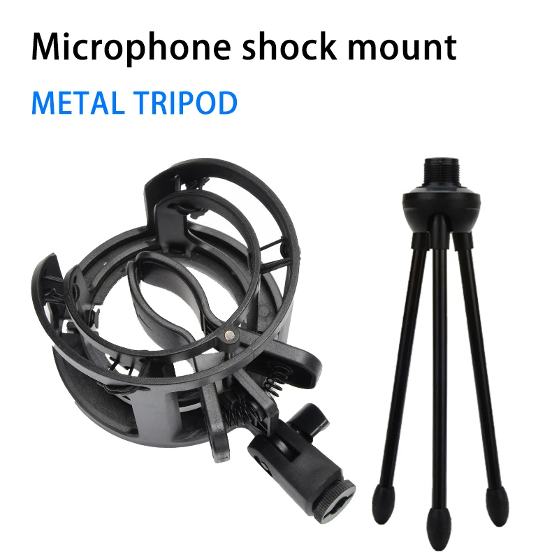 Supporto antiurto per microfono con treppiede in metallo - Microfoni universali da 20-65 mm, smorzatore di vibrazioni a vite regolabile da 3/8".