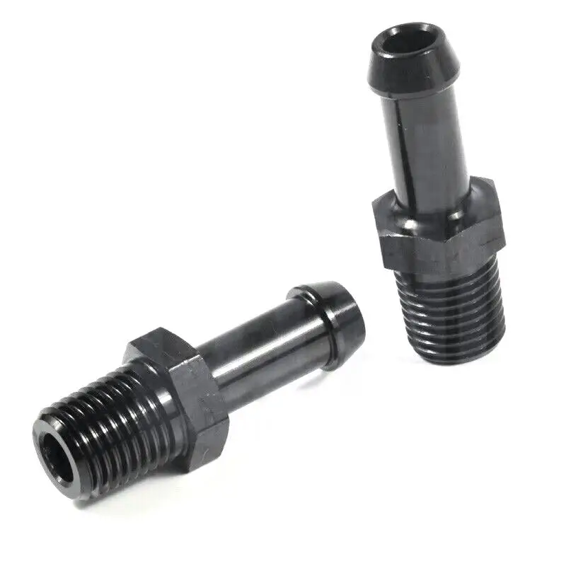 2 pz In Lega di Alluminio AN6 1/4 "NPT 13.6mm Maschio A 3/8" 9mm Tubo Barb Adattatore Dritto Raccordo Nero Nuovo di Alta Qualità