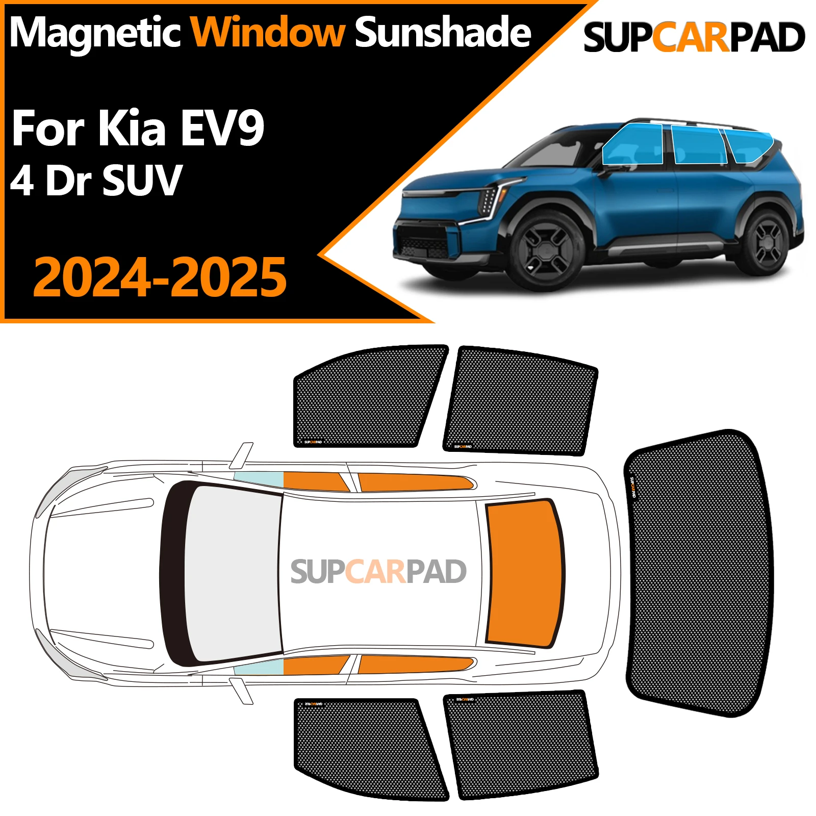 Parasole per finestrino auto personalizzato per Kia EV9 4 Dr SUV 2024-2025 Tenda magnetica in rete per parabrezza anteriore