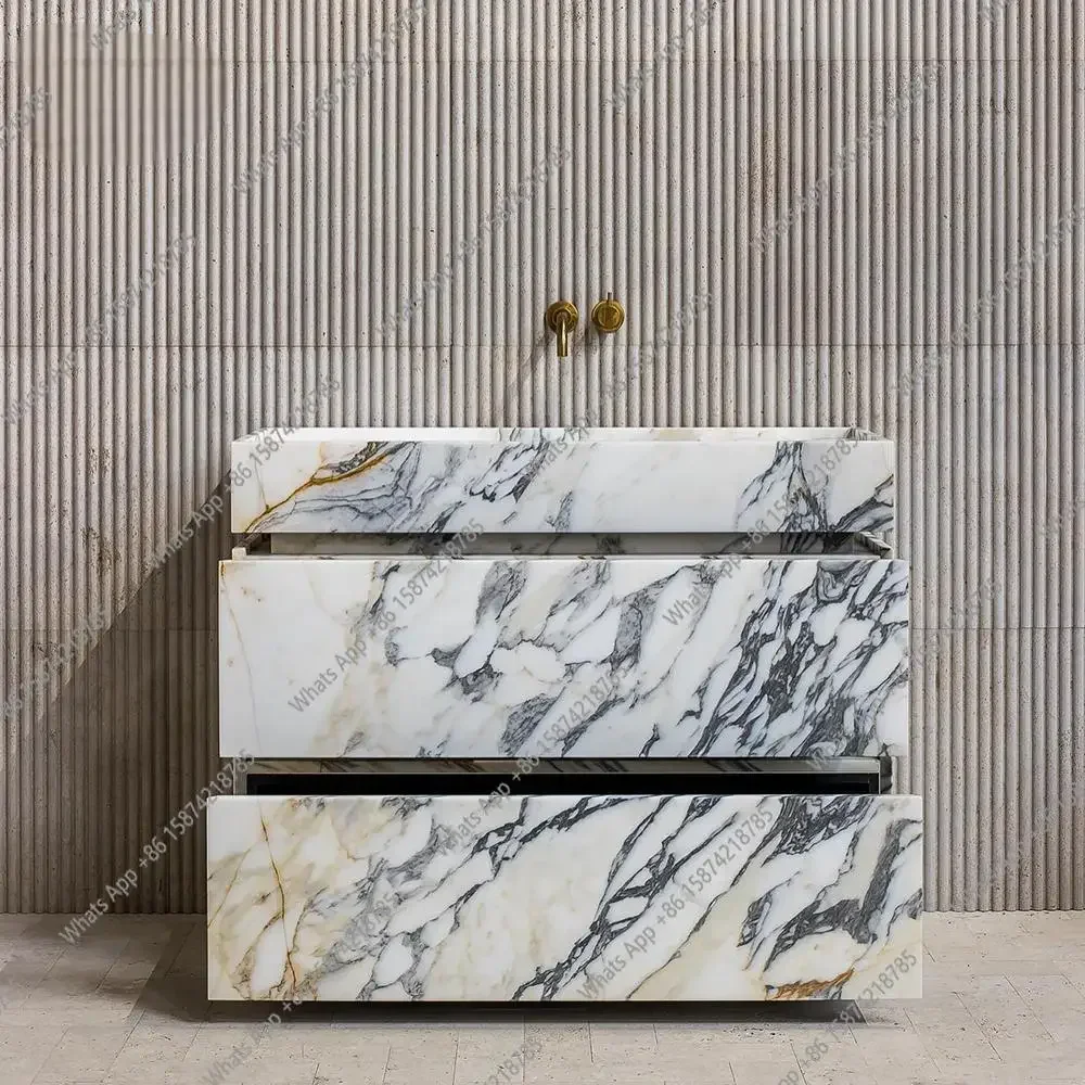 Mobile da Bagno in Marmo Intagliato NN, Design Vintage/Minimalista Italiano, Lavabo Integrato per Hotel e Ville, Resistente alla Corrosione e al Calore