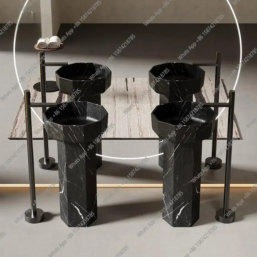 K C69 Lavello a piedistallo in travertino beige, lavabo in pietra autoportante per esterni per balcone della villa, resistente alle macchie e durevole, personalizzabile