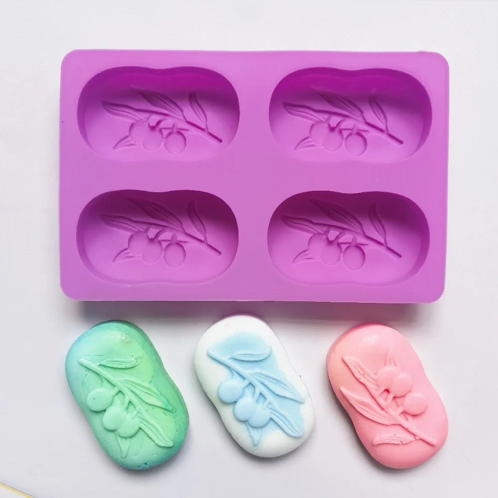 Stampo in silicone a forma di albero di ulivo a 4 cavità, stampo classico fatto a mano per la creazione di sapone artigianale.