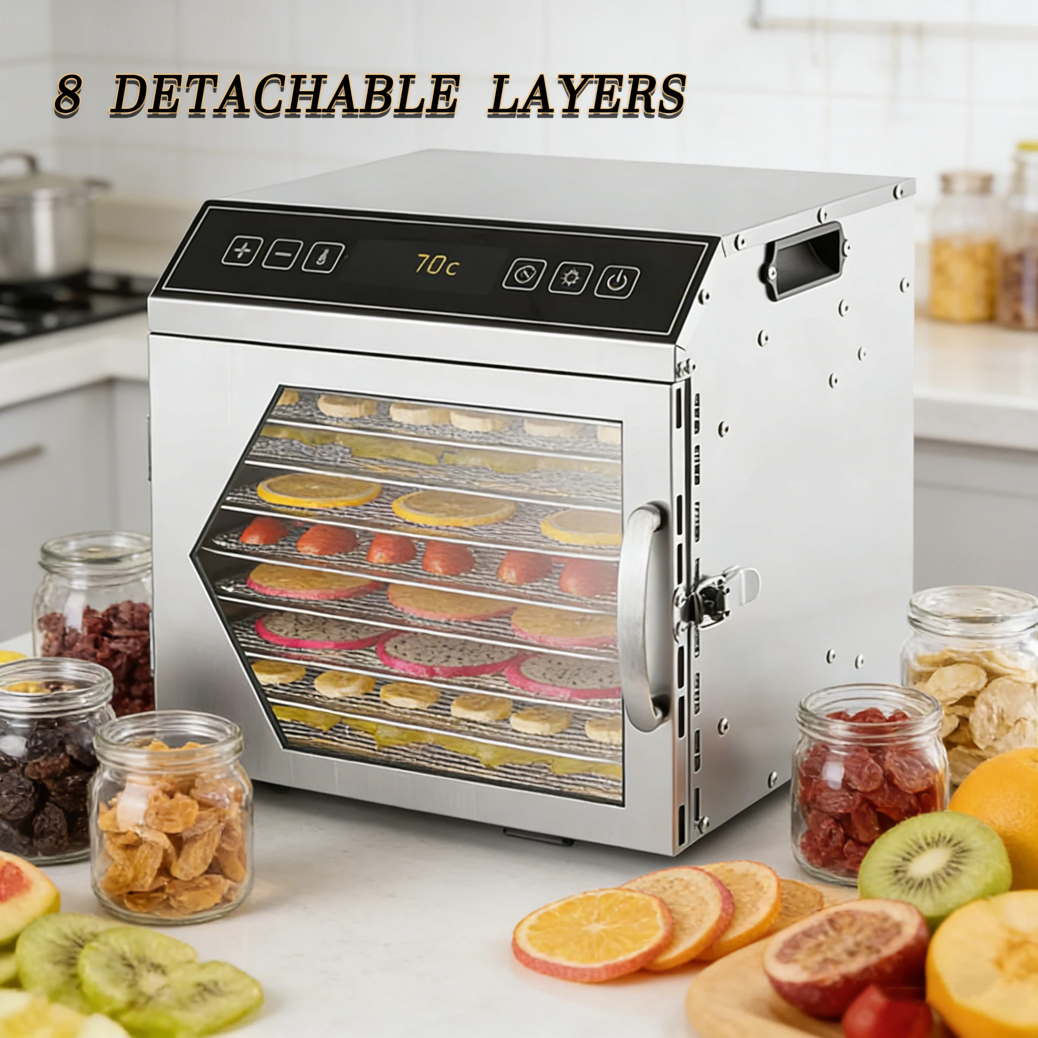 Essiccatore per Alimenti a 8 Livelli in Acciaio Inox con Controllo Digitale della Temperatura per Frutta, Verdura, Carne e Snack
