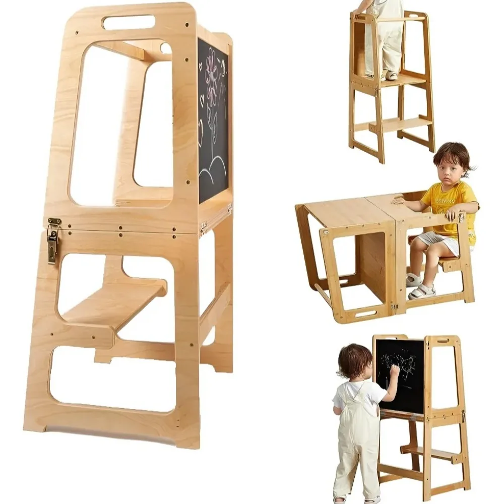 Sgabello da cucina per torre per bambini, per imparare i più piccoli, torre in legno con lavagna, torre da cucina in piedi con binario di sicurezza