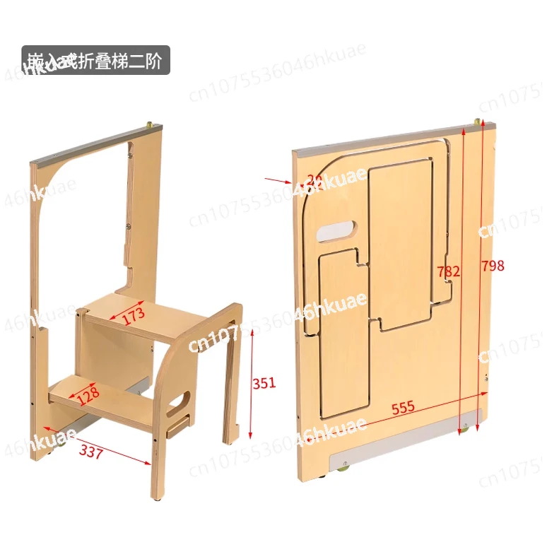Tavola marina in legno massello, scala a due, tre gradini, sgabello, libreria coperta, pieghevole, personalizzazione ultrasottile