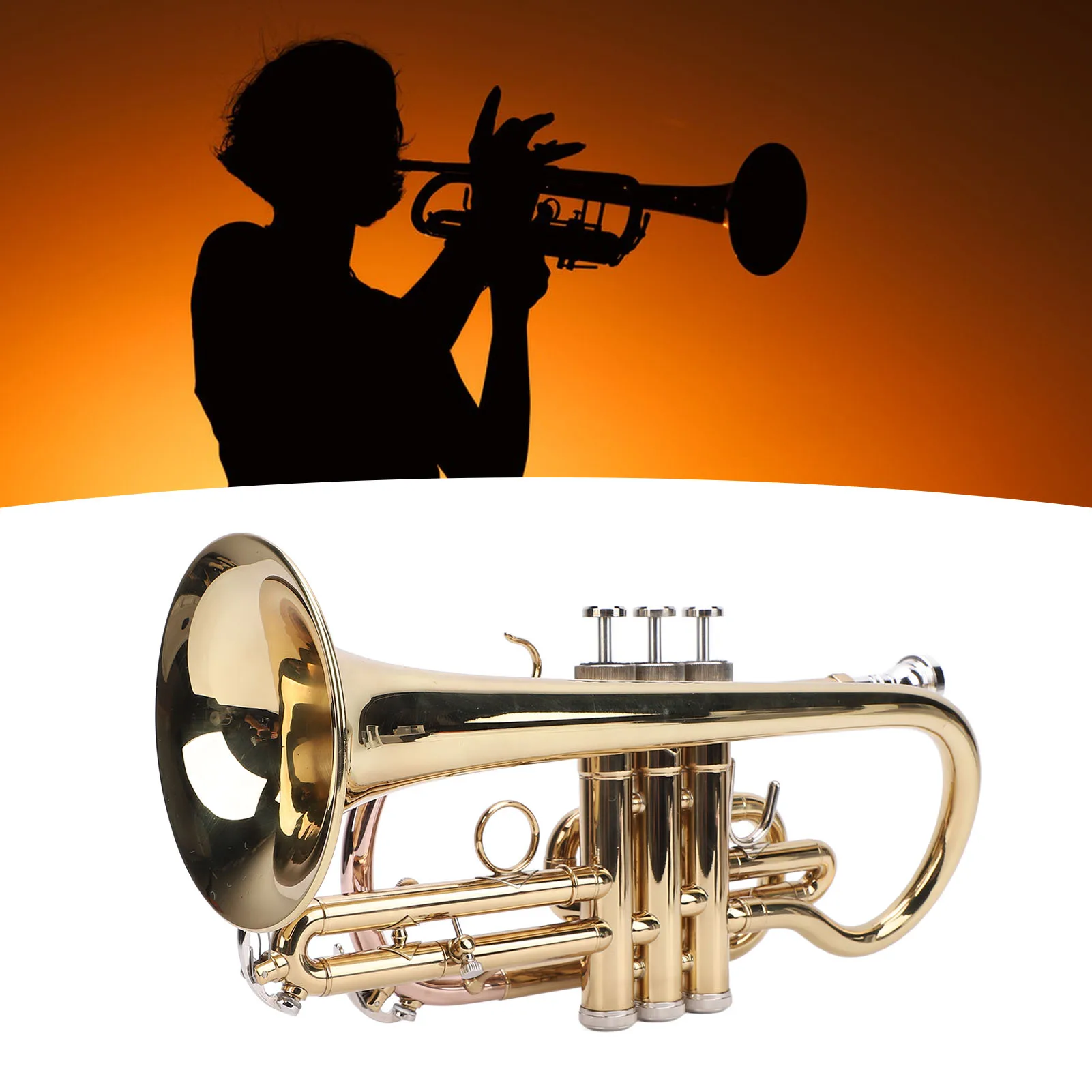Cornetta professionale SLADE Bb in ottone con corpo in ottone, finitura laccata oro, canneggio in rame fosforoso, cornetta per esibizioni con custodia e accessori.