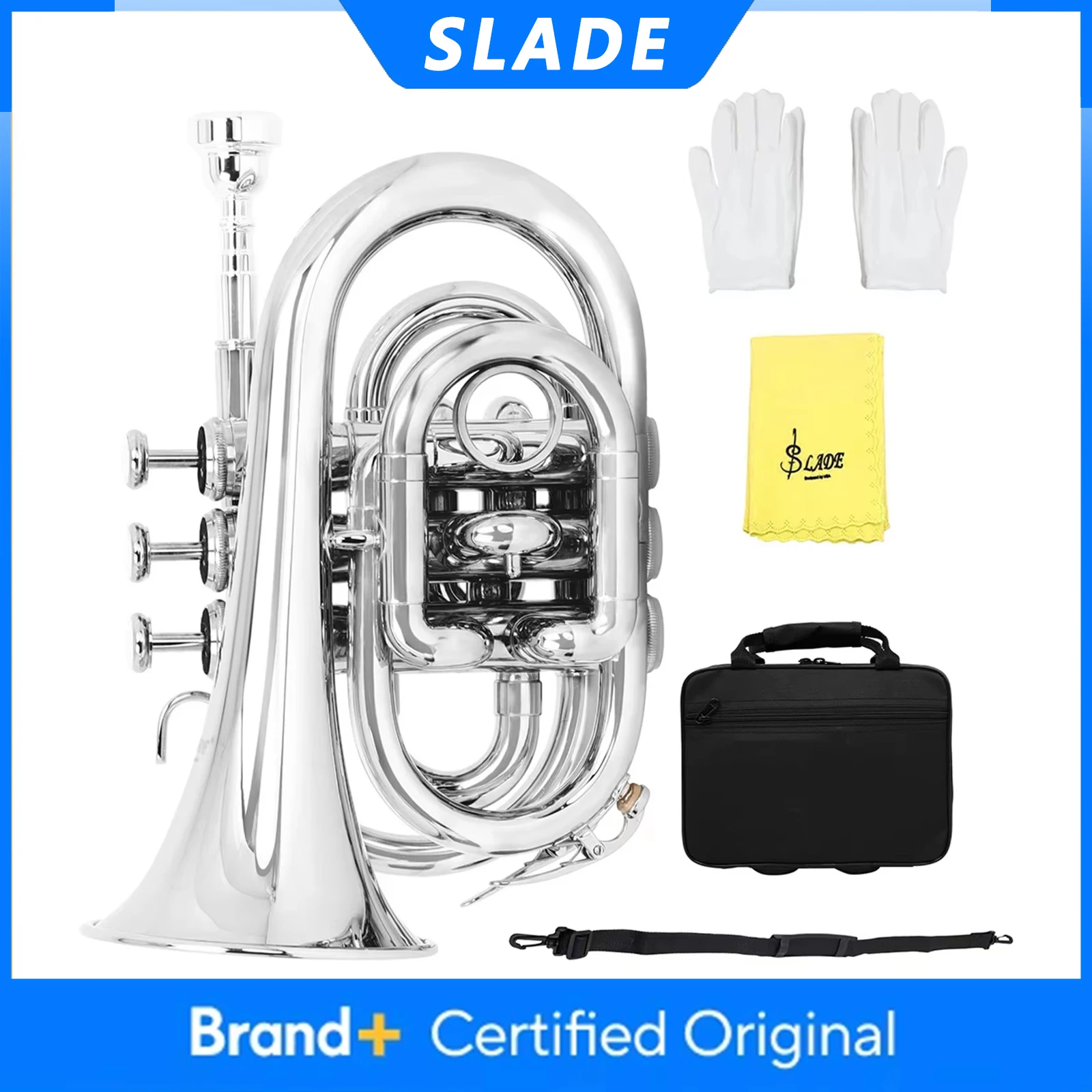 Corno palmare SLADE Bb in ottone, portatile, argentato, con custodia in tessuto, strumento professionale in ottone con parti e accessori