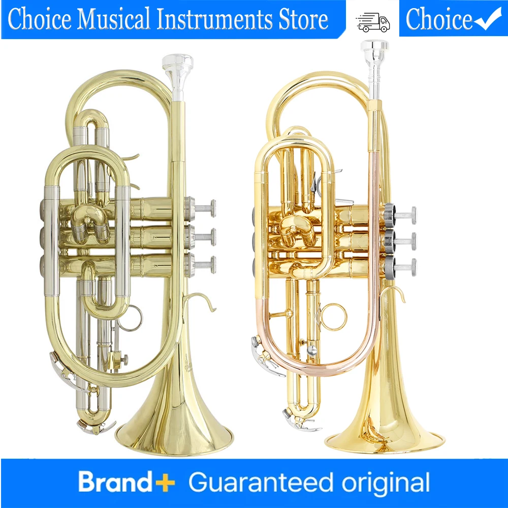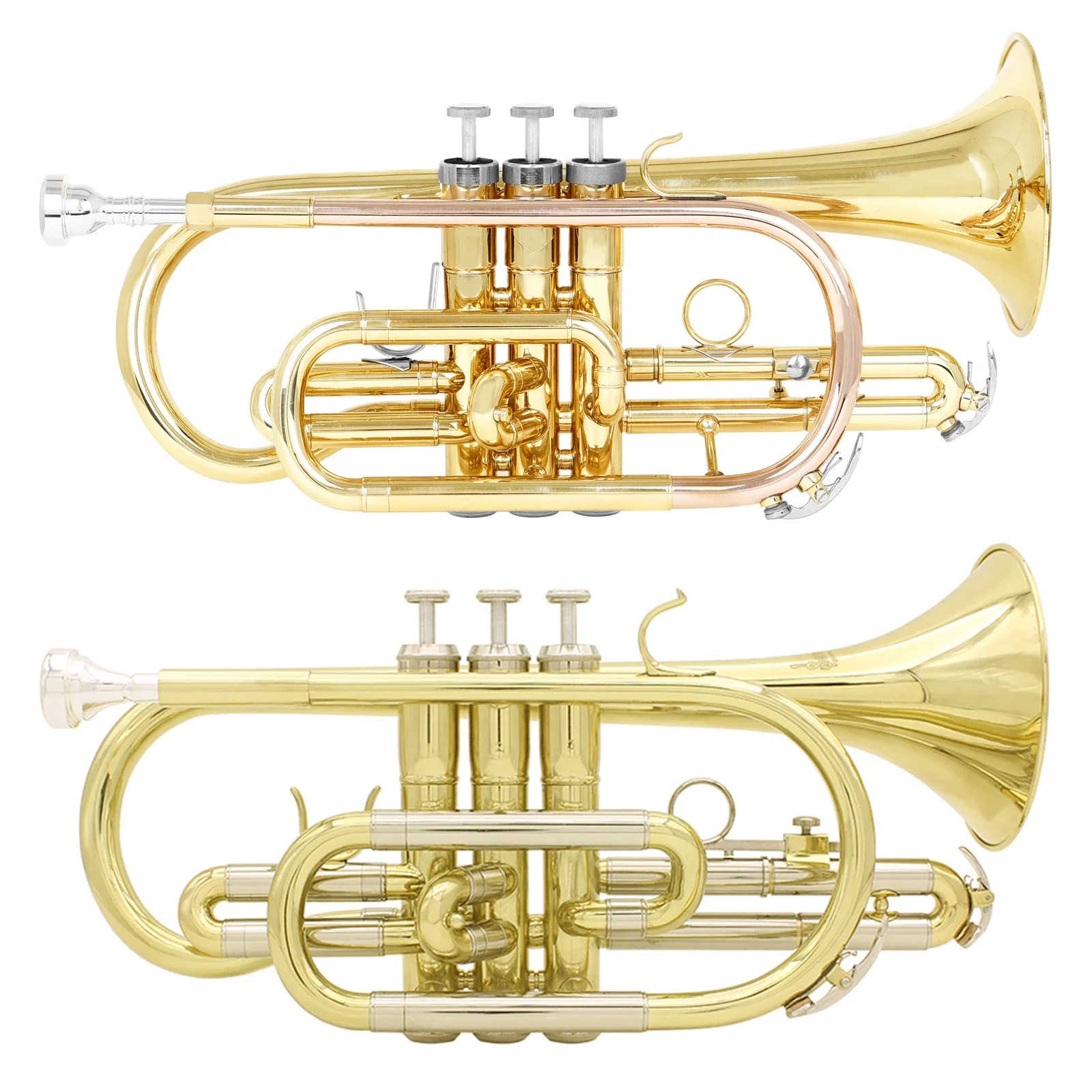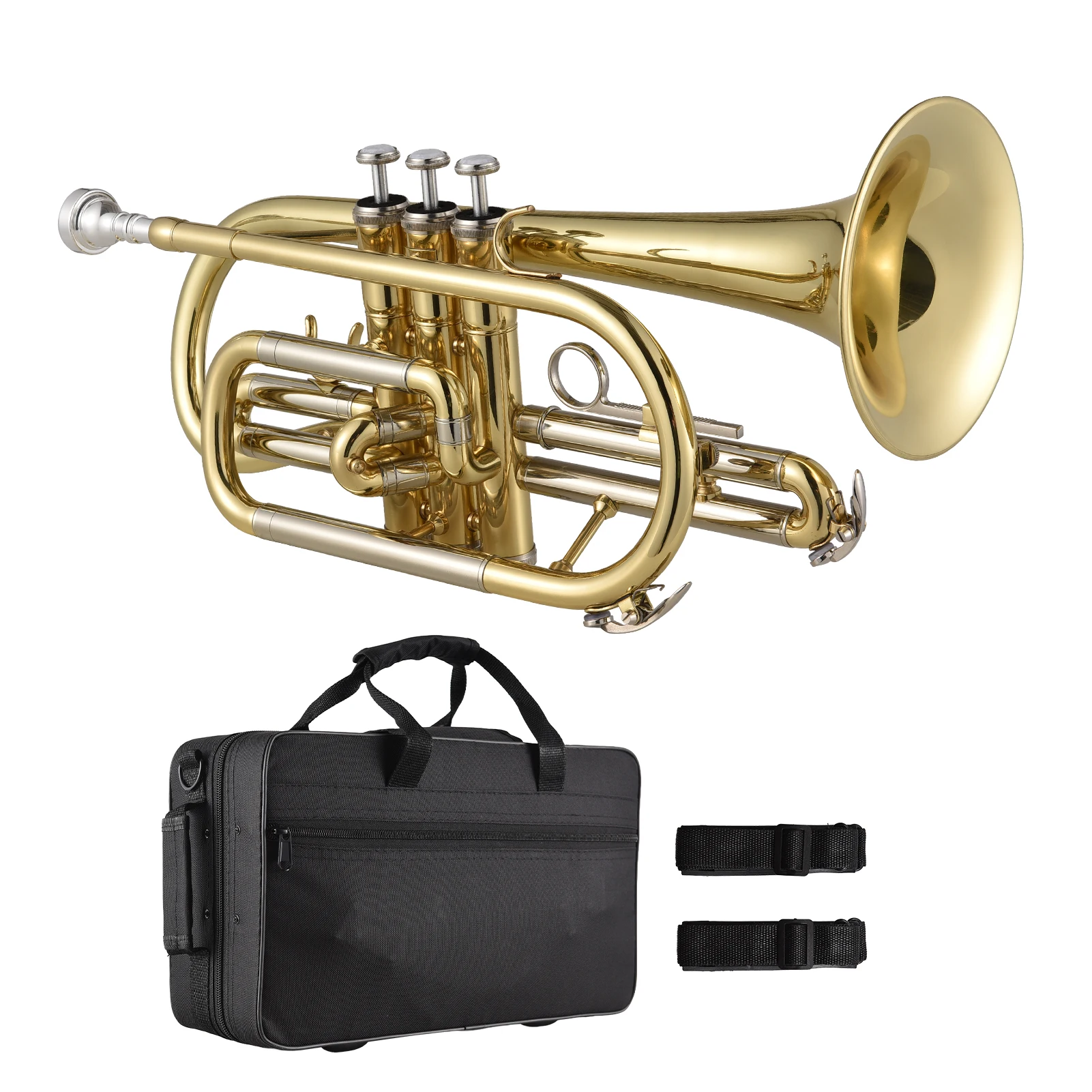 Strumento a fiato professionale in ottone placcato oro con cornetta piatta in Sib B di alta qualità con custodia in tessuto per pulizia con guanti per bocchino
