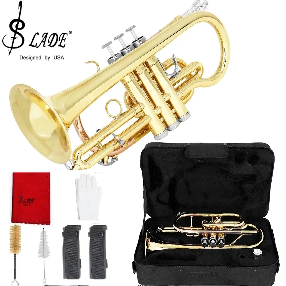 Cornetta SLADE Bb Corpo professionale in ottone Lacca dorata Cornetta tono piombo rame fosforoso con scatola di immagazzinaggio Parti e accessori