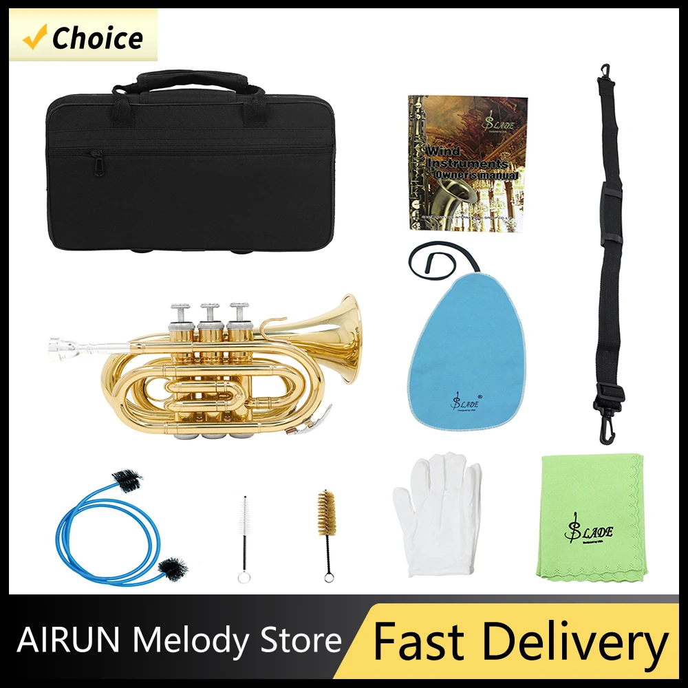 SLADE Pocket tromba ottone Bb Gold laccate Mini tromba con boccaglio custodia cinturino guanti Kit di pulizia per studenti principianti