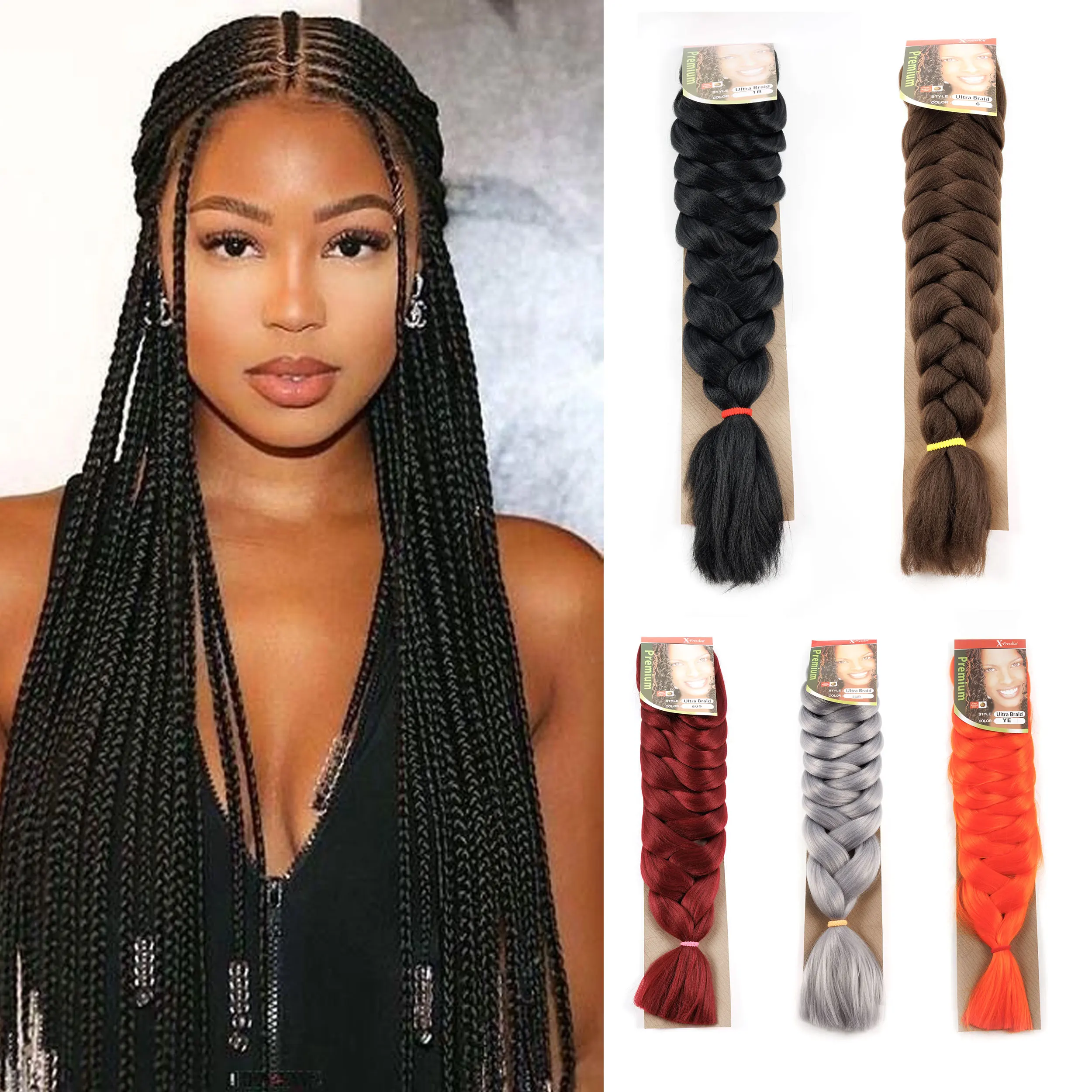Colori personalizzati Treccia sintetica per capelli Jumbo 24 pollici 100g Capelli intrecciati sintetici monocolore con orpelli