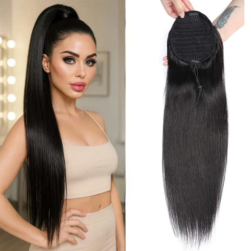 Extension Coda di Cavallo in Capelli Umani Lisci, 100% Remy, da 12 a 28 Pollici, per Donna