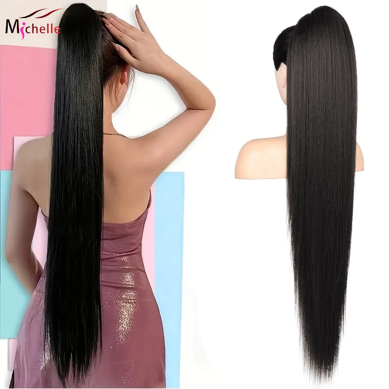 Estensione dei capelli umani con coda di cavallo diritta crespa, 100 g, clip avvolgente in coda di cavallo nera naturale # 1B Remy indiano da 14-26 pollici per le donne