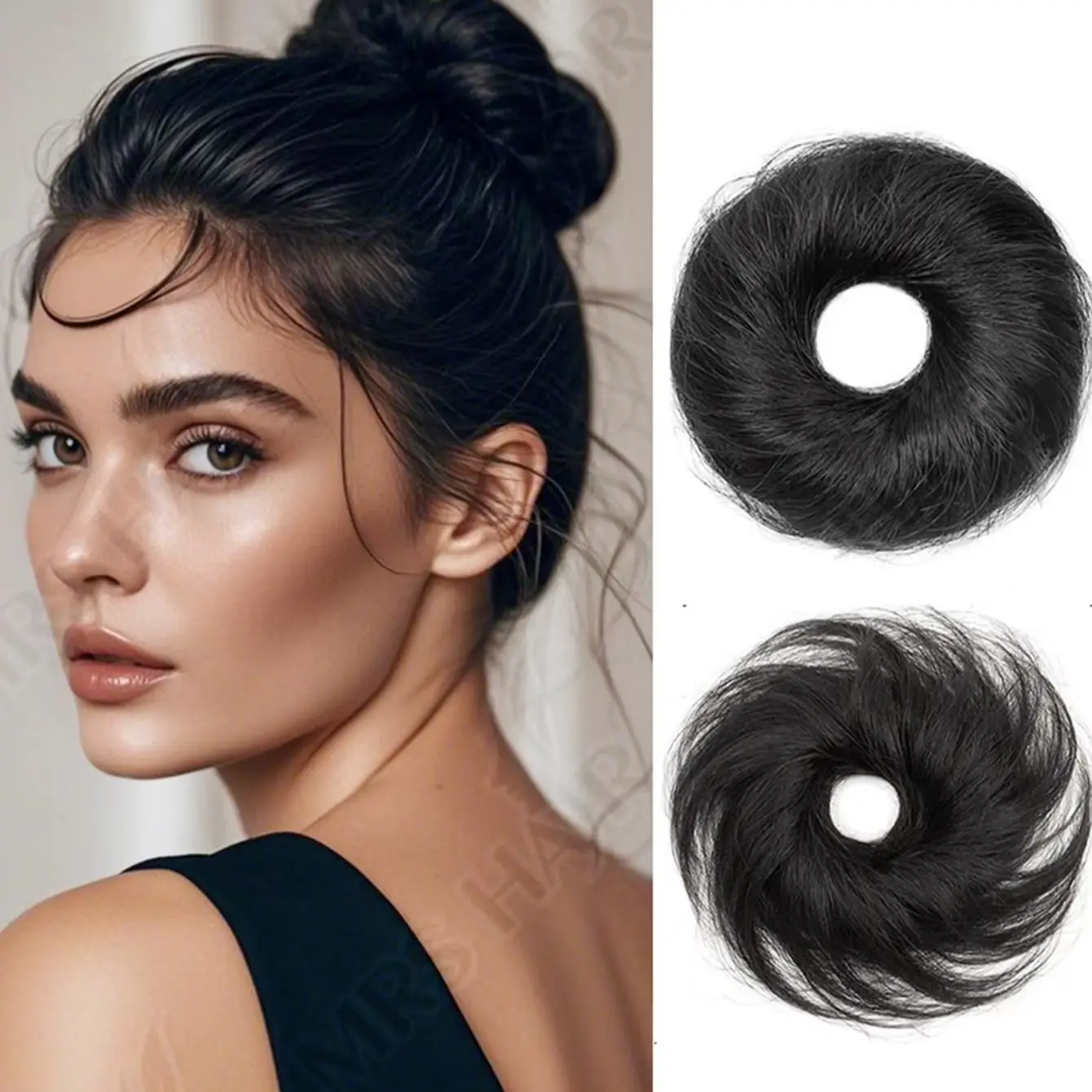 Chignon per capelli umani Scrunchie Parrucchino Miscela senza cuciture Texture realistica Scrunchies disordinati Panino per capelli per donna