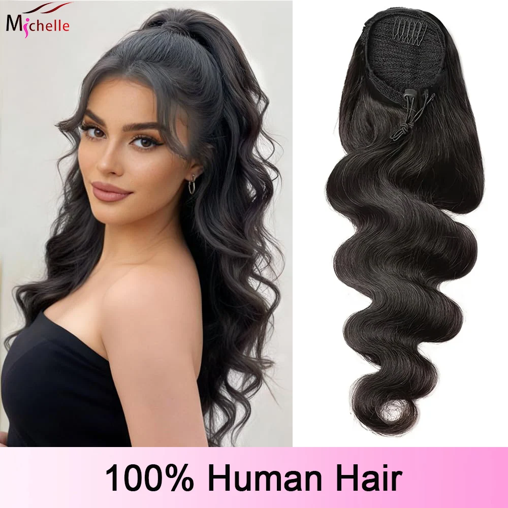 Extensions per capelli a coda di cavallo con elastico, 100% capelli umani brasiliani, nero naturale, con clip, 100g, per donna