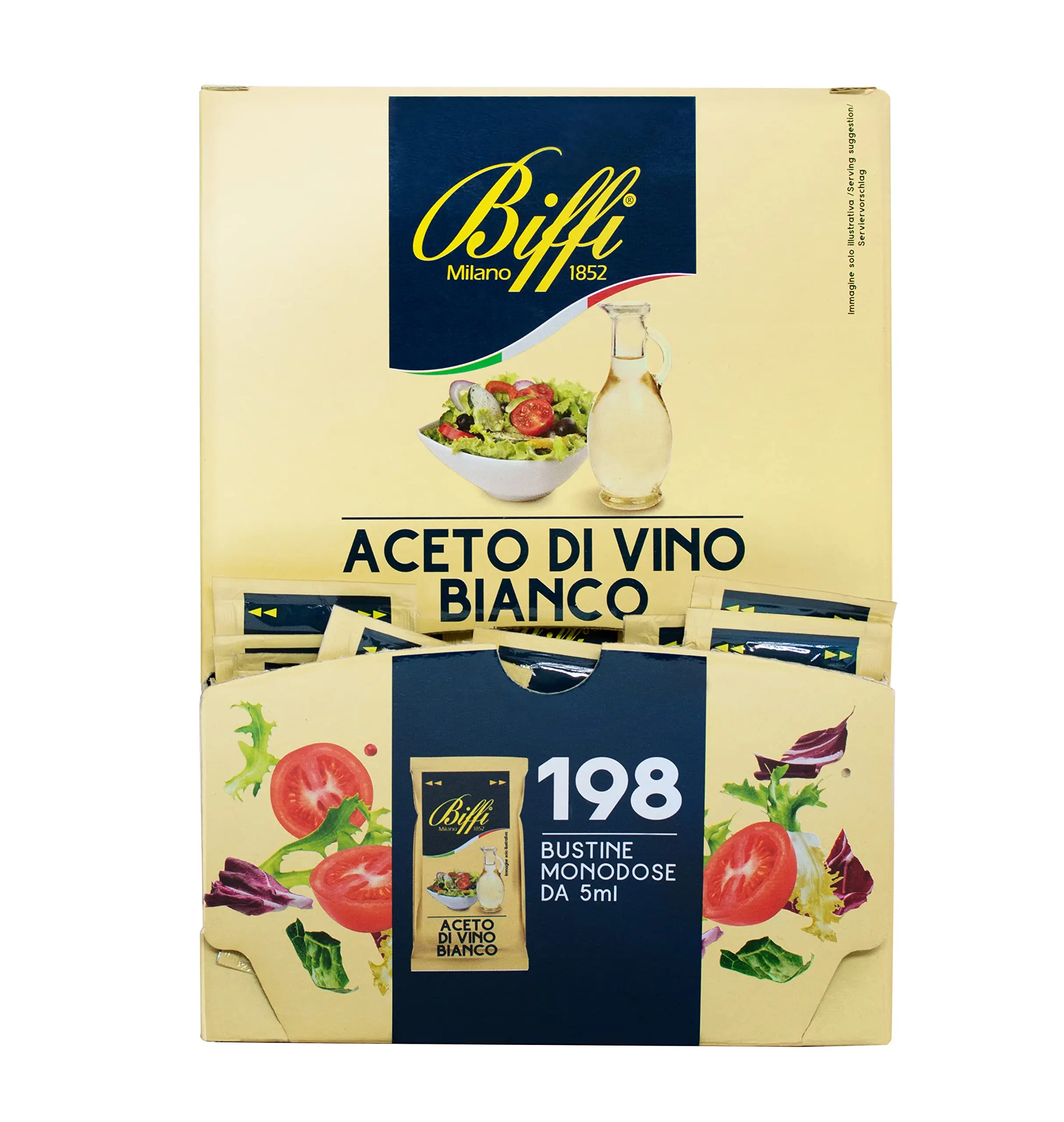 Biffi - Aceto di Vino Bianco - Monodose - 198 bustine monoporzione da 5 ml