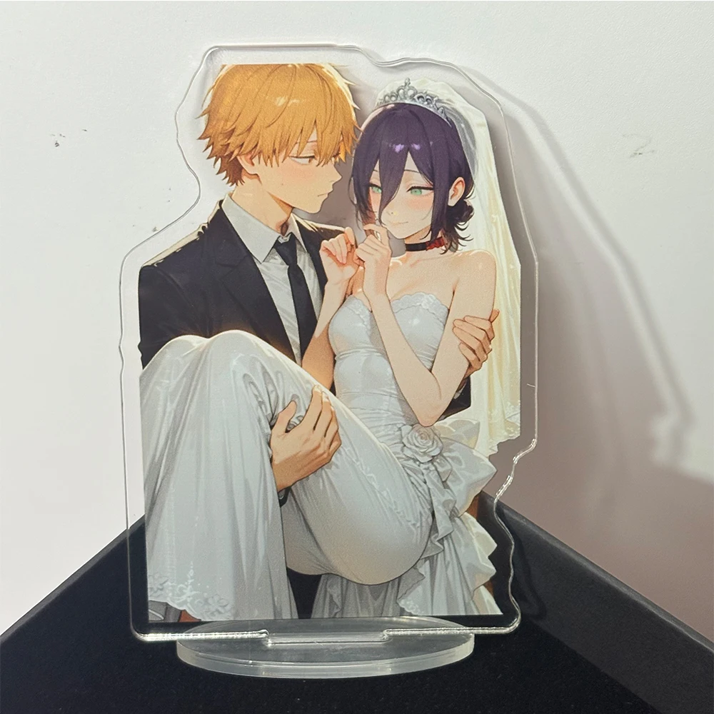 Statuetta Anime di Reze e Denji in Abito da Sposa, Supporto in Acrilico, Accessori Anime Chainsaw Man, Ornamento da Scrivania, Regalo Festivo 10cm