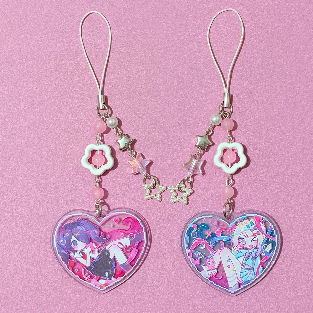 Gioco Need Girl Overdose KAngel Amechan Catena per telefono con perline Portachiavi a forma di cuore in acrilico Portachiavi per zaino Puntelli Cosplay Regali di Natale