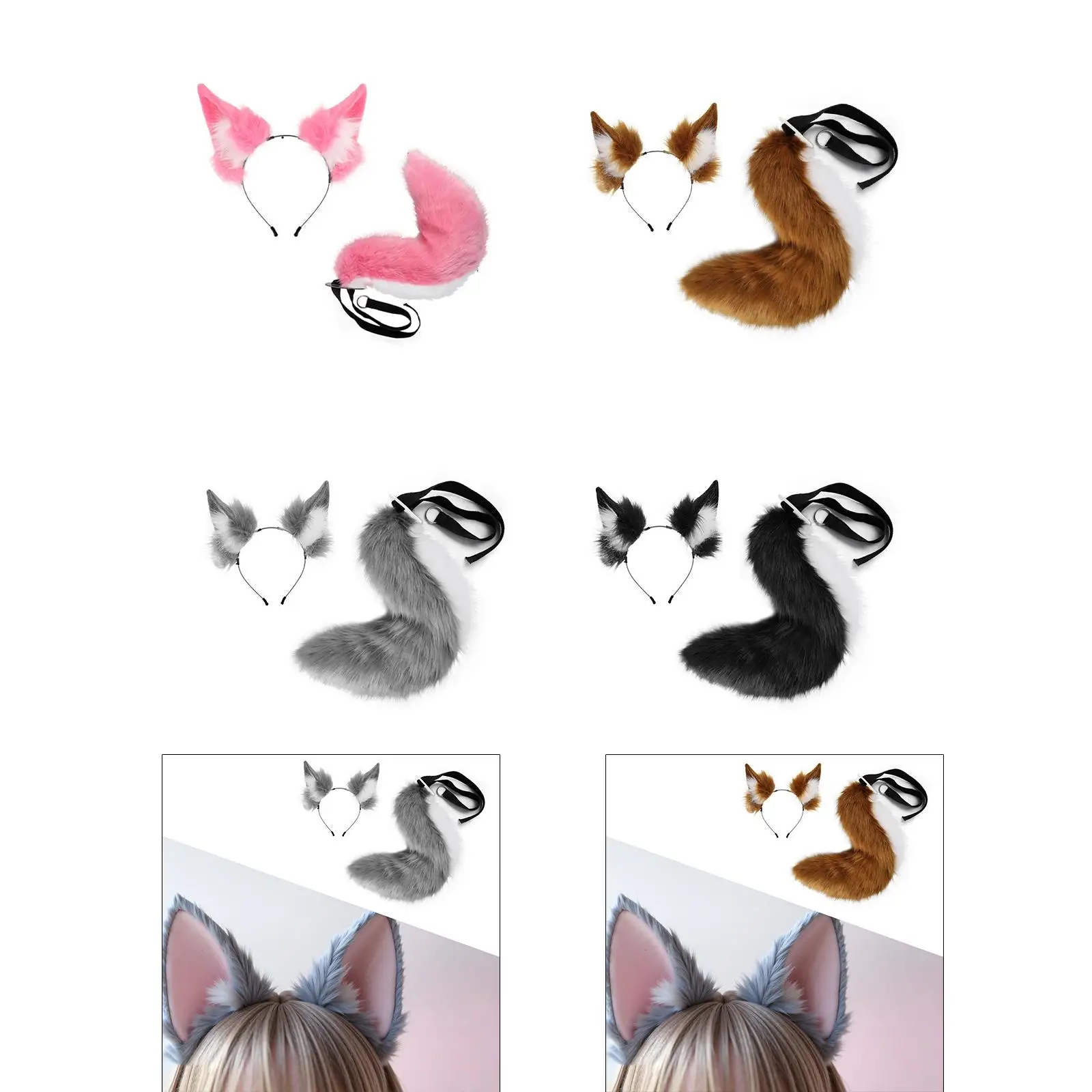 Set di orecchie e coda, copricapo, coda di animale, regalo per feste, carnevale, giochi di ruolo