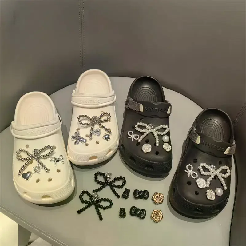 1 Set Ciondoli per scarpe con fiocco di perle Clip di moda Sneaker Fiore di perla Decorazioni per scarpe avanzate Accessori per scarpe con fibbia staccabile fai-da-te