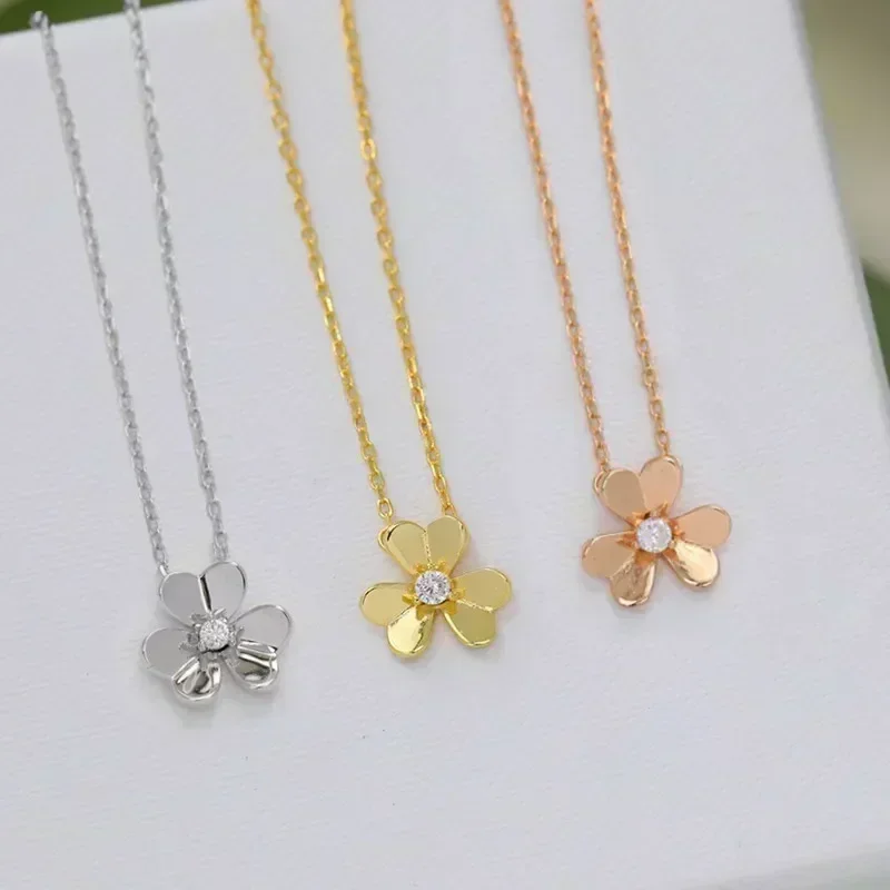 Collana di Lusso PR 2024 con Quadrifoglio Portafortuna in Oro per Donne, Argento Sterling, Gioiello Raffinato di Alta Gamma