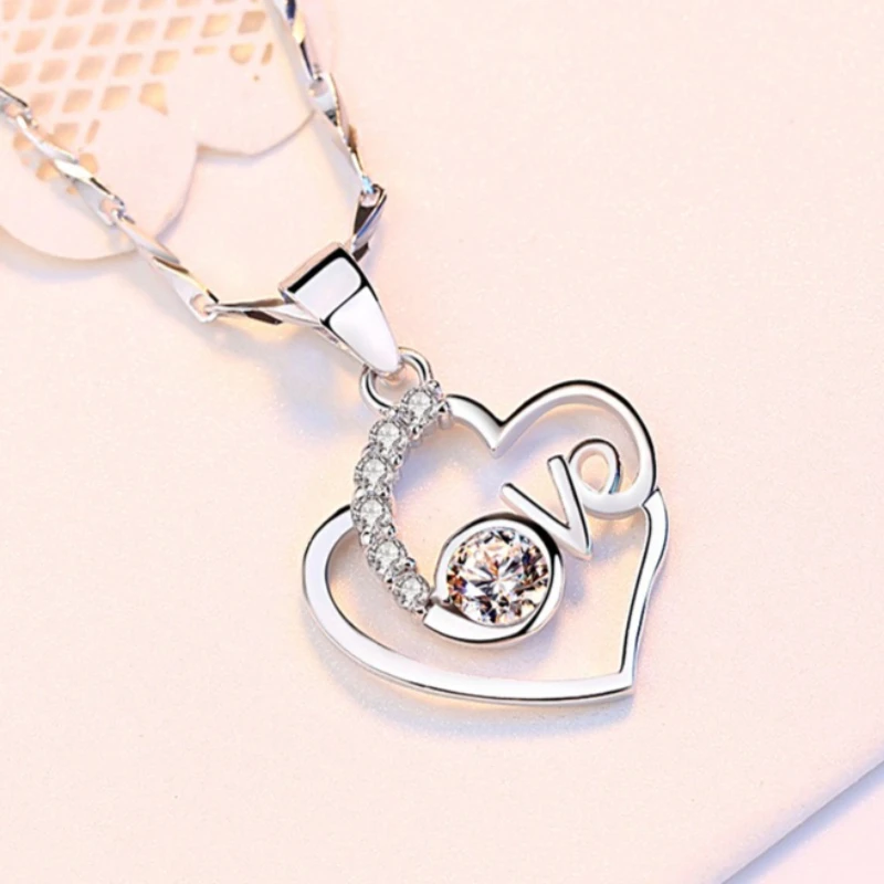 Collana in argento sterling 925 con ciondolo a forma di cuore per donna, gioielli per matrimonio, fidanzamento, moda, classici, regalo, festa, alta qualità