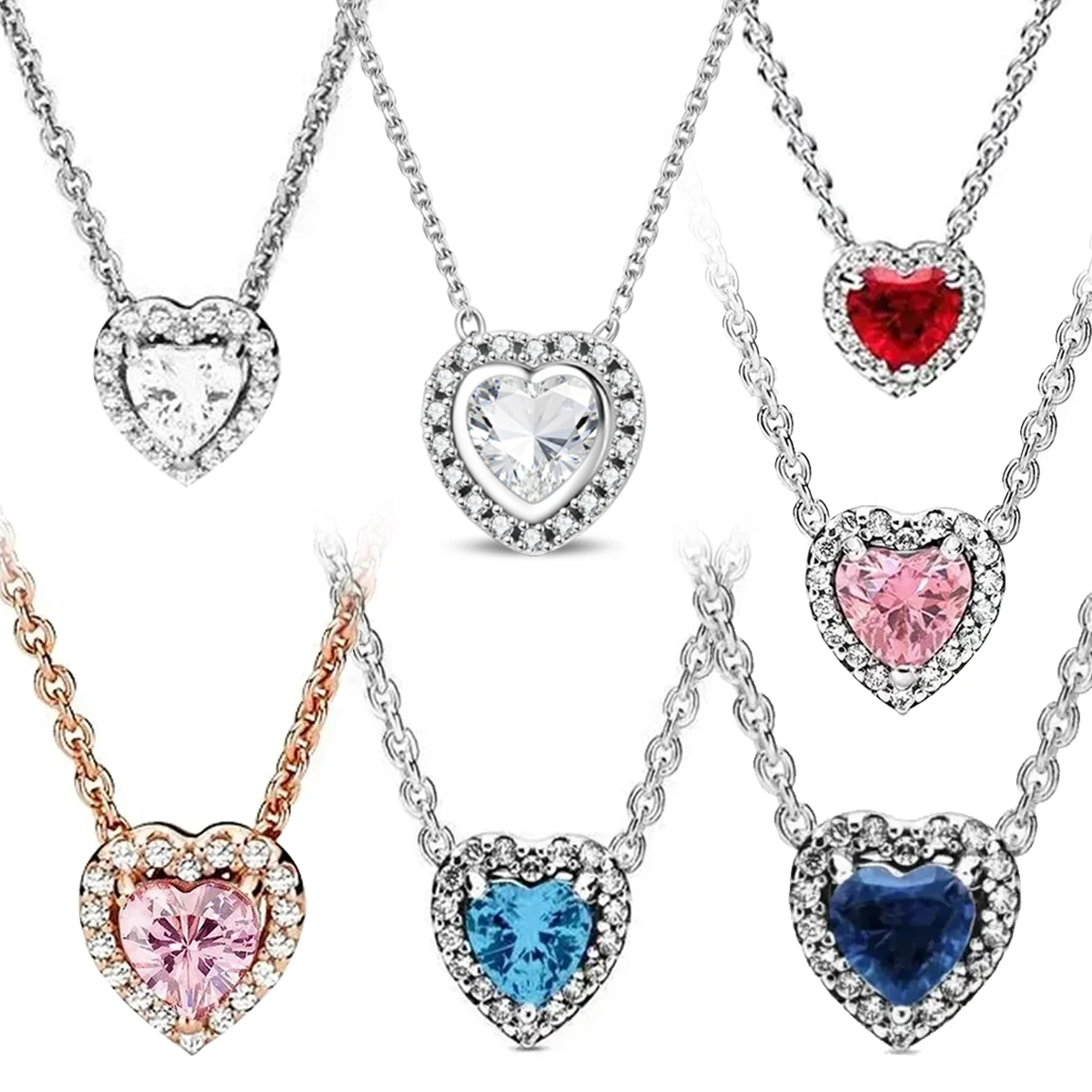 Collana con Ciondolo a Forma di Cuore in Argento S925, Gemma Rosa Blu Viola, Cristallo Brillante, Gioiello Raffinato, Regalo per Donne