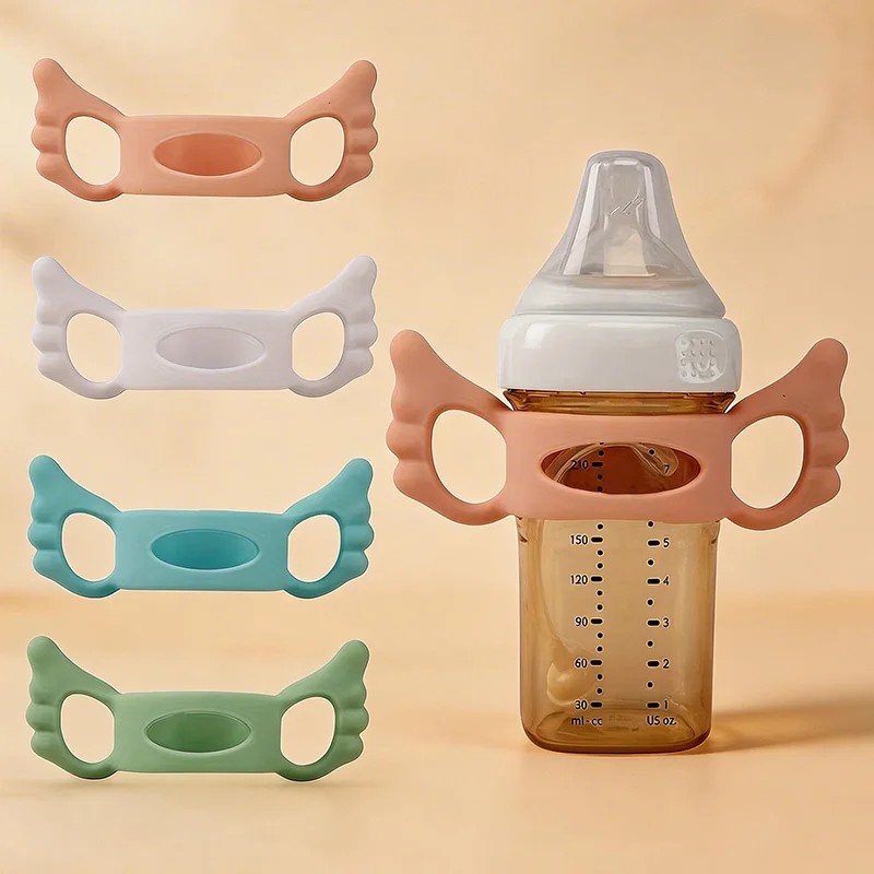 2 pezzi (colore casuale) Maniglia in silicone, maniglia per biberon a collo largo con ali d'angelo, accessorio morbido ed elastico per biberon