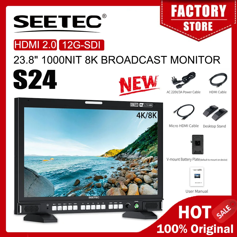 Monitor Broadcast SEETEC S24 23.8 Pollici 4K/8K, Alta Luminosità 1000nit, 4x12G-SDI HDMI UltraHD 3840x2160