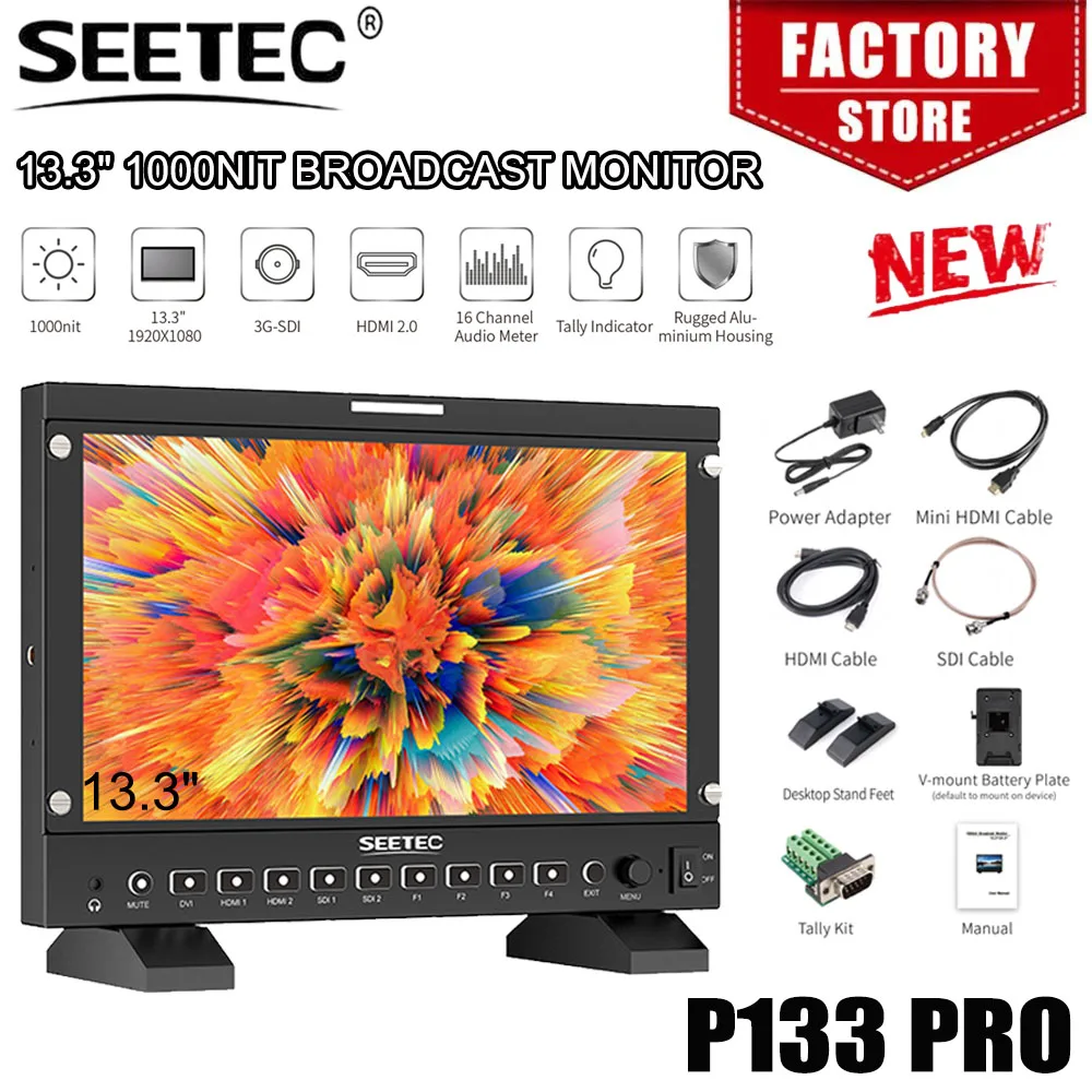 Monitor Professionale SEETEC P133 PRO 13.3" 1000nit ad Alta Luminosità per Trasmissioni, 3G-SDI HDMI 4K 60Hz DVI IPS Full HD 1920x1080