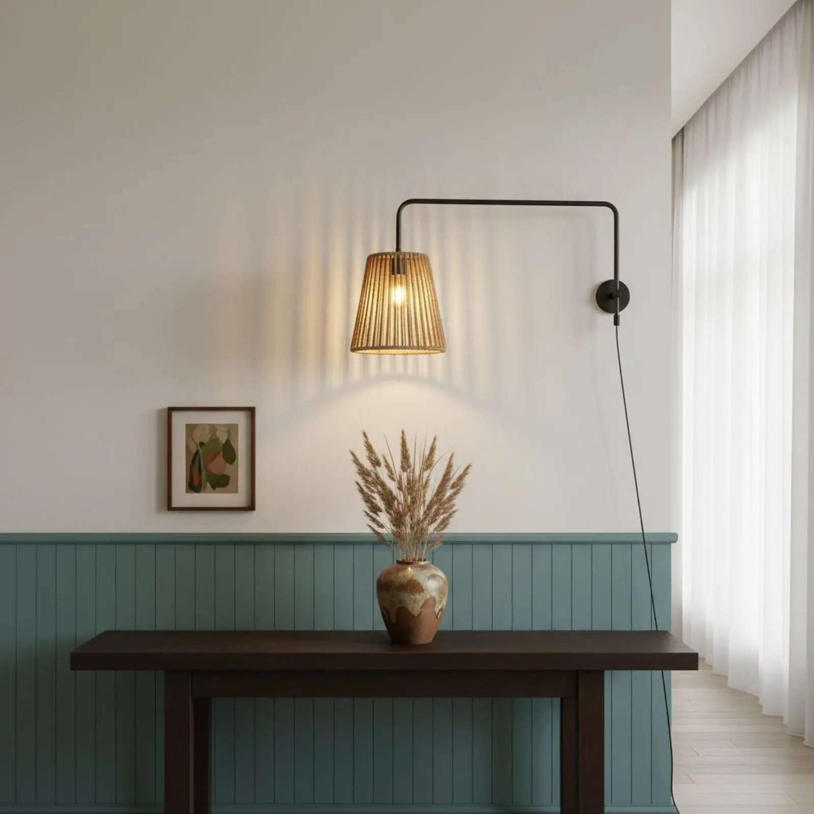 Paralume in Rattan Intrecciato a Mano, Coprilampada Rustico in Vimini Naturale, Estetica Naturale, Copertura in Corda di Carta per Hotel, Caffè