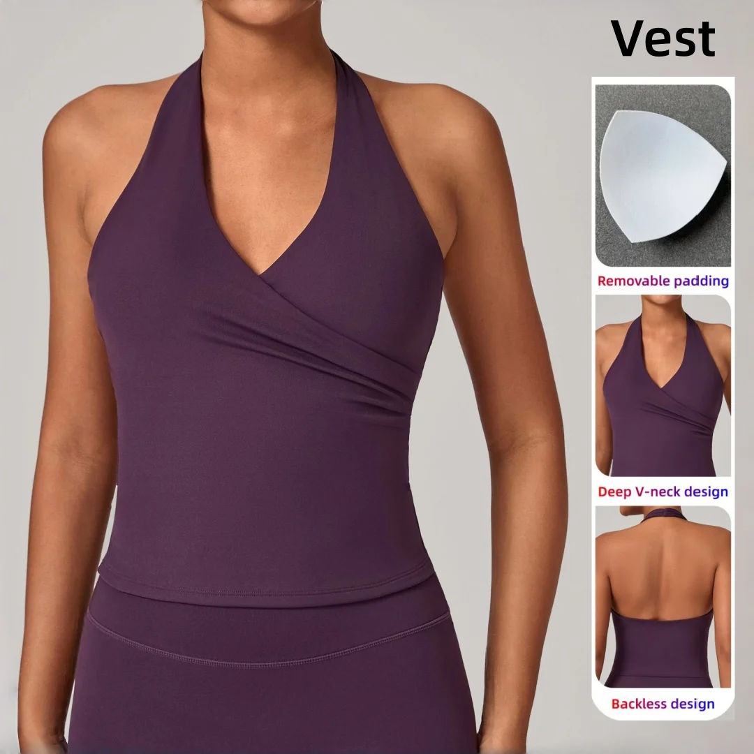 Nuovo Top da Yoga da Donna Attillato con Schiena Scoperta, Scollo a V, Stile Halter, per Sport, Fitness, Pilates, Corsa, Allenamento Casual e Palestra