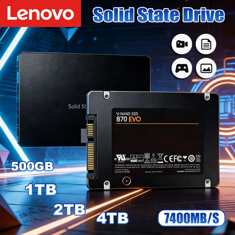 Disco a Stato Solido Lenovo SSD 870 EVO 1TB/2TB/4TB, Disco Rigido Interno SATA3 da 2,5 Pollici per Laptop, Microcomputer e Desktop