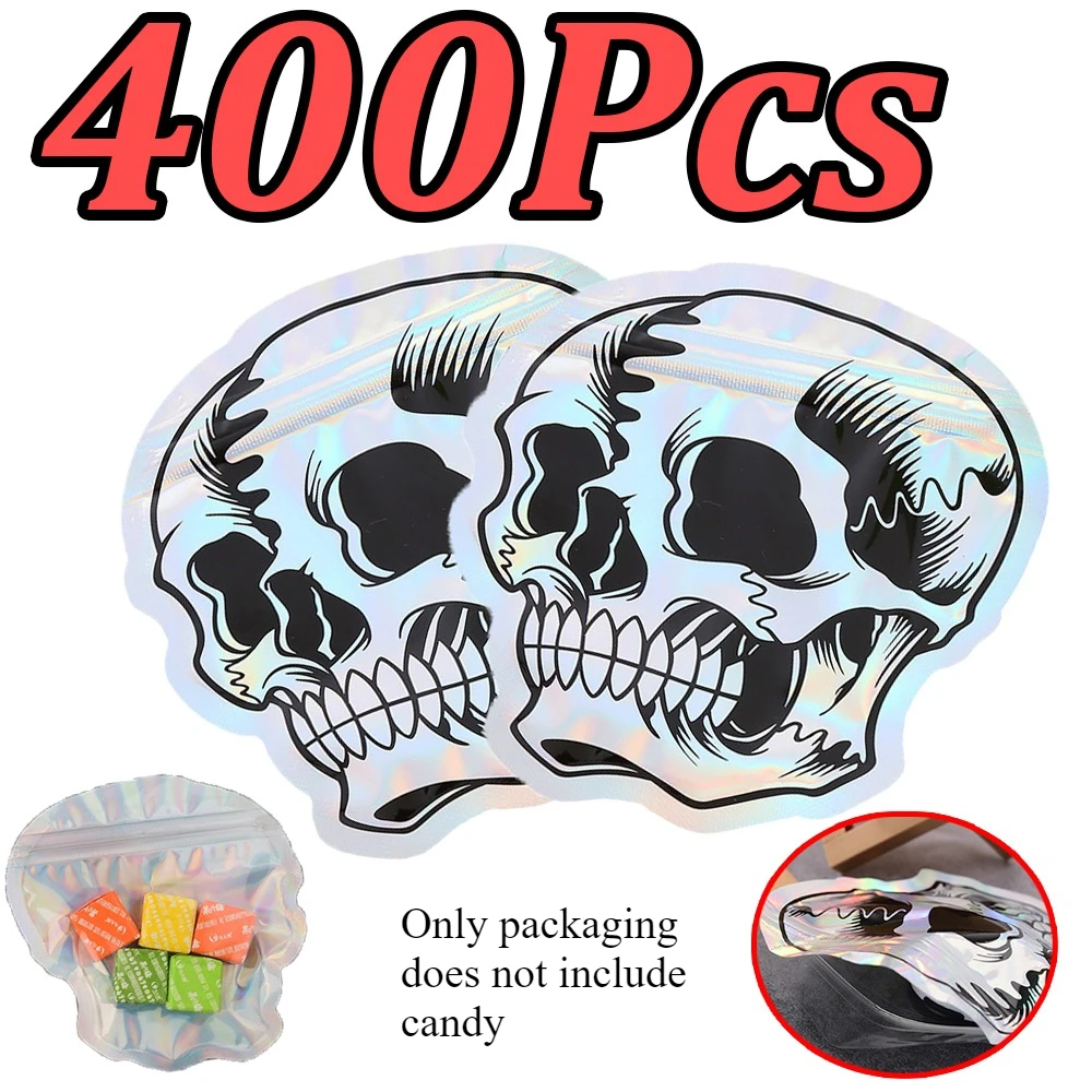 1-400 pezzi sacchetto di caramelle di Halloween teschio laser autosigillante sacchetto di imballaggio regalo di gioielli sacchetti di plastica riutilizzabili per riporre caramelle biscotti