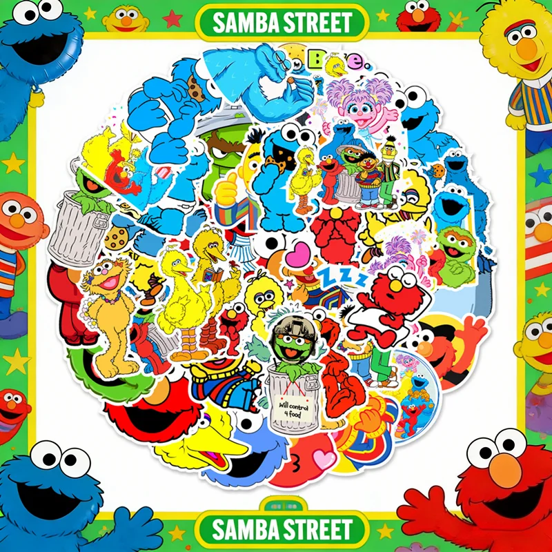 50 pezzi / lotto di adesivi carini di Sesame Street, adesivi impermeabili non ripetitivi per decorazioni regalo per feste per bambini