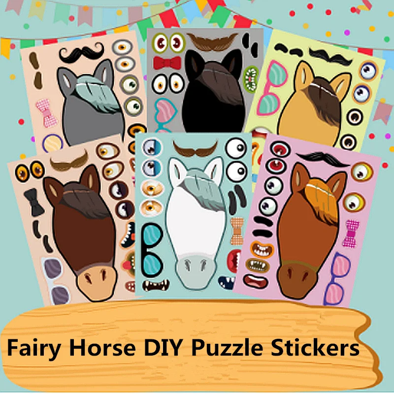 12 Fogli di Adesivi Puzzle DIY a Tema Cavalli da Corsa, Regali per Feste per Bambini, Adesivi per Bambini