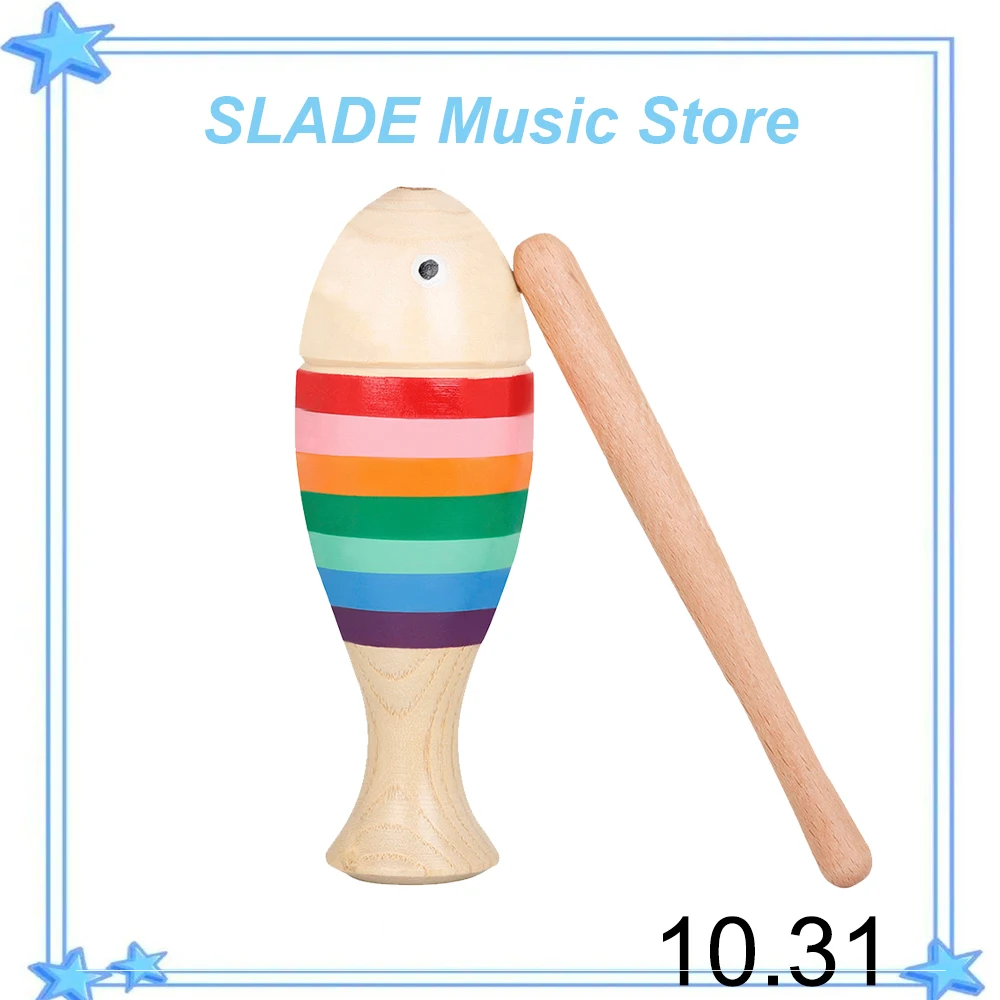 Strumento musicale in legno per percussioni luminose Pesce colorato Musica per bambini Accessori per l'educazione precoce con bastone