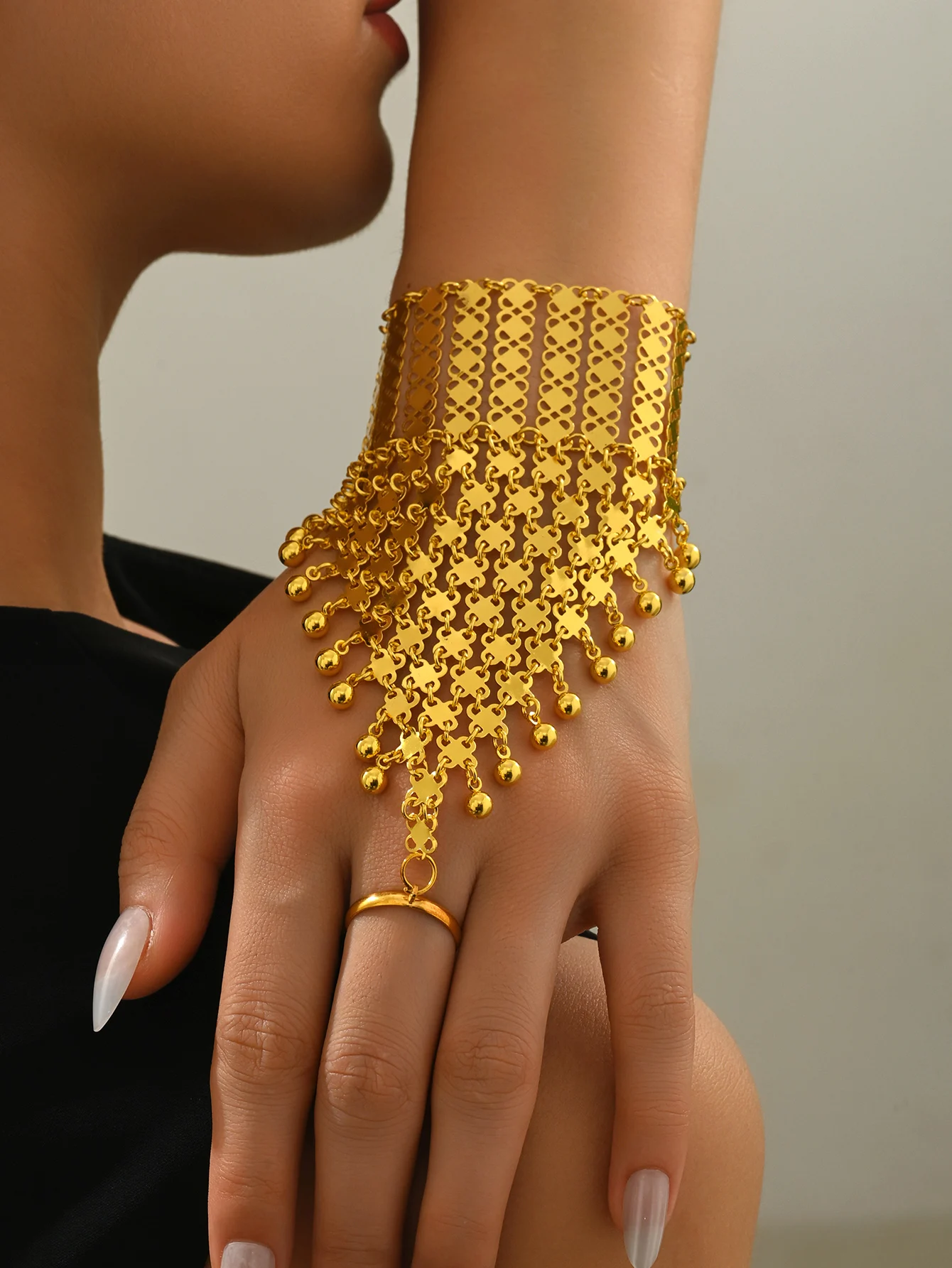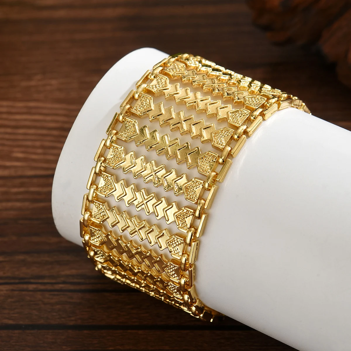 Bracciale realizzato a mano a forma di fiore scavato in metallo placcato oro in stile etnico arabo con dettagli squisiti