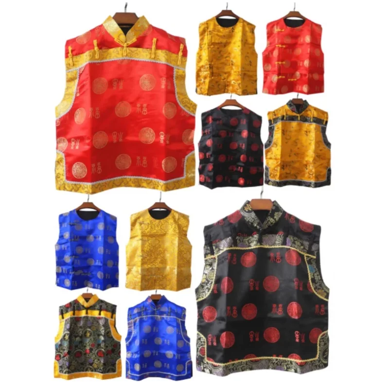 Gilet Tradizionale Cinese da Uomo Ricamato, Stile Tang, Giacca Gialla Dinastia Qing, Gilet Festivo, Costume per Spettacoli Asiatici