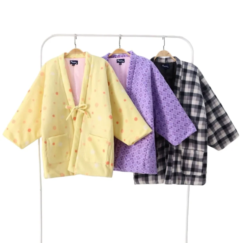 Kimono Invernale da Donna in Pile, Colore Caramella, Stile Harajuku Yukata, Cardigan Kimono Giapponese, Pigiama, Giacche Hanten