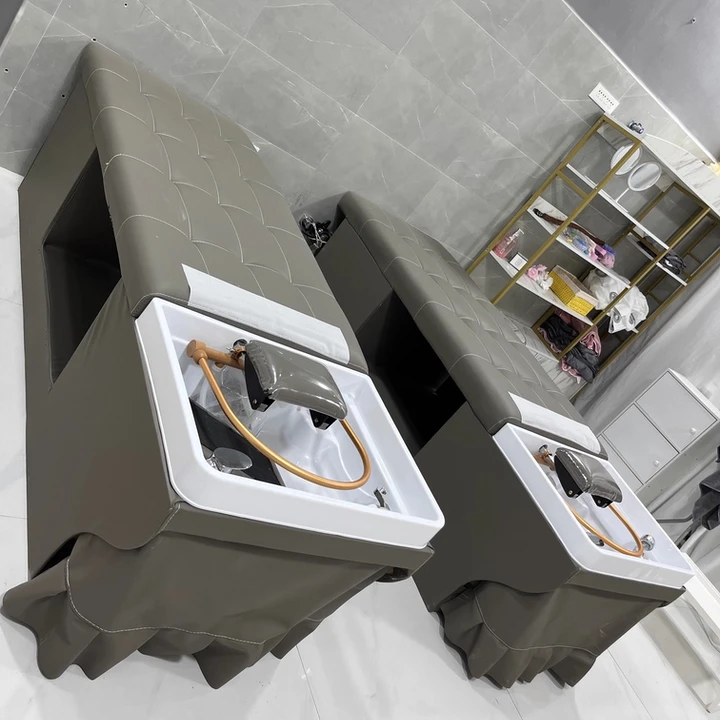 Lettino professionale per shampoo per barbiere, parrucchiere, salone di bellezza con sistema di fumigazione per la circolazione dell'acqua