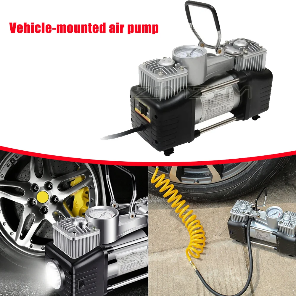 Pompa ad aria 12V 500PSI in metallo a doppia camera con luce LED, 70L/min, facile da usare, portatile, leggera, per pneumatici auto, gonfiabili e materassi ad aria