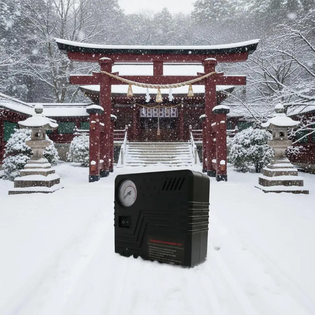 Nuova Pompa d'Aria Portatile per Auto, Gonfiatore Pneumatici DC 12V con Manometro, Connettore Accendisigari, Compatta